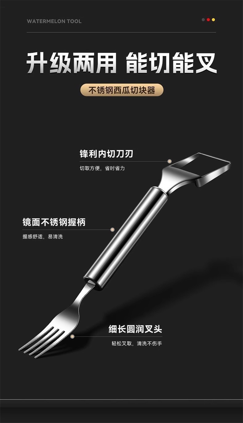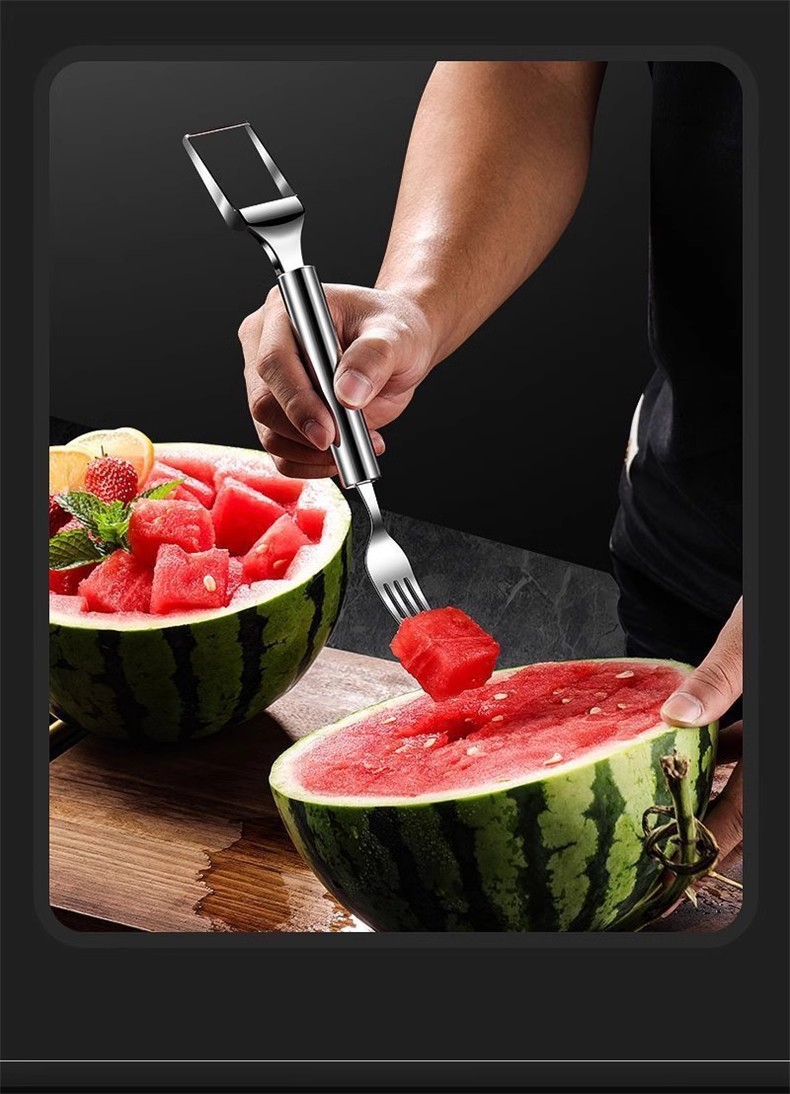 スイカの切りの神器の双頭のステンレスの切りの分割器の家庭用の刀のフォークの台所の両用の鋭利な専用の刀