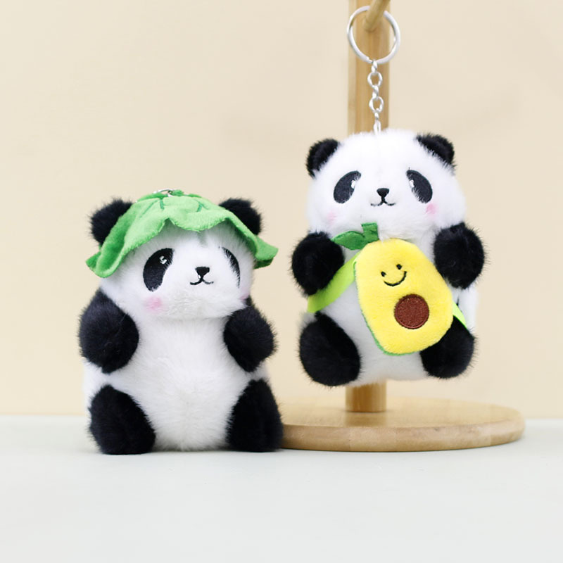 かわいいハスの葉の牛油果のパンダのペンダントのぬいぐるみのおもちゃの公の子の包みは掛けて飾ります。