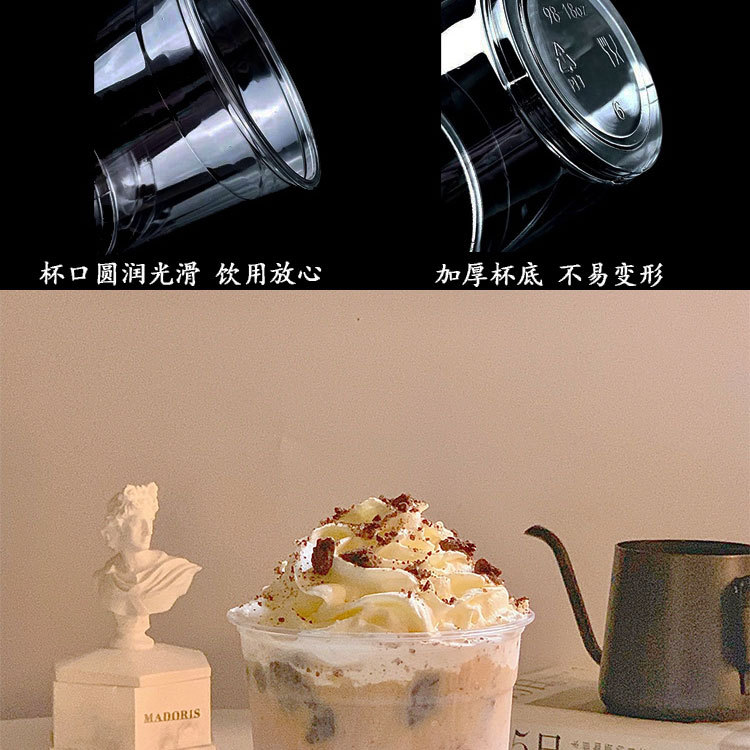 ミルクティーカップ98口径使い捨てコーヒーpet冷たい飲み物カップ蓋付き自家製透明レモン茶オレンジジュースプラスチックカップ