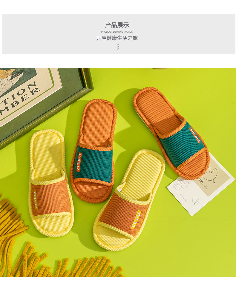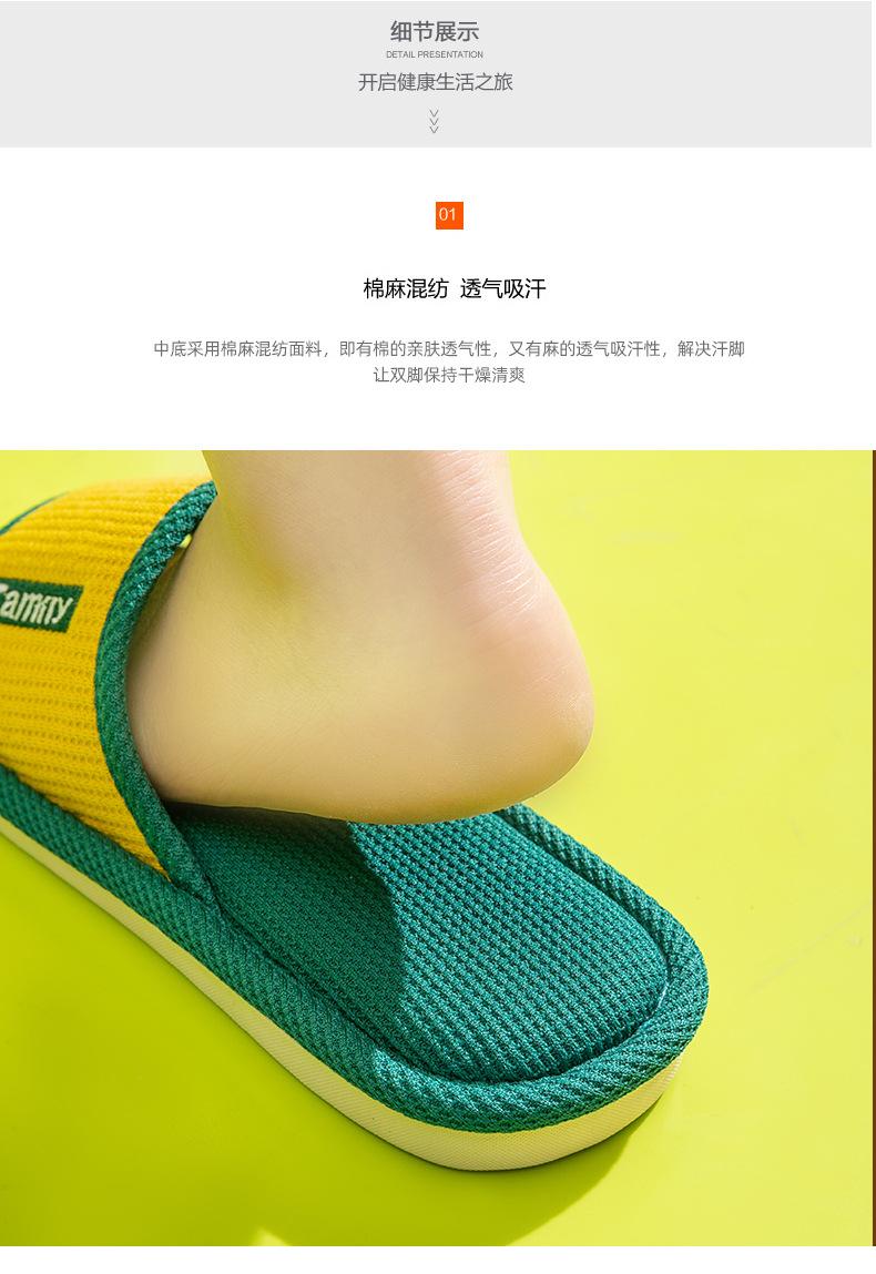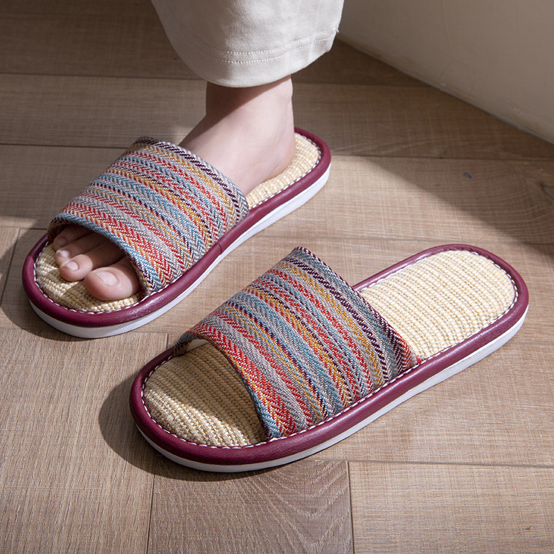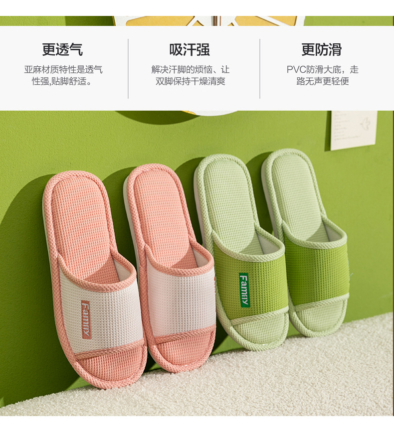 亜麻スリッパ男女春秋家庭滑り止め軟底室内家庭用吸汗静音四季木床夏