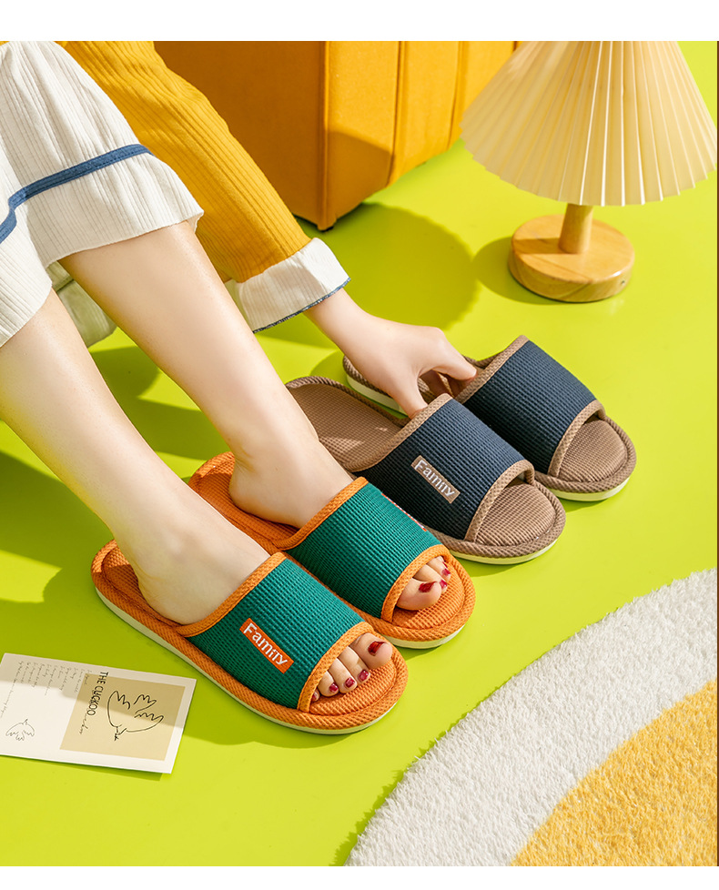 リネンスリッパ男女春と秋の家庭用滑り止めソフト底室内家庭用吸汗静音四季床夏卸売り
