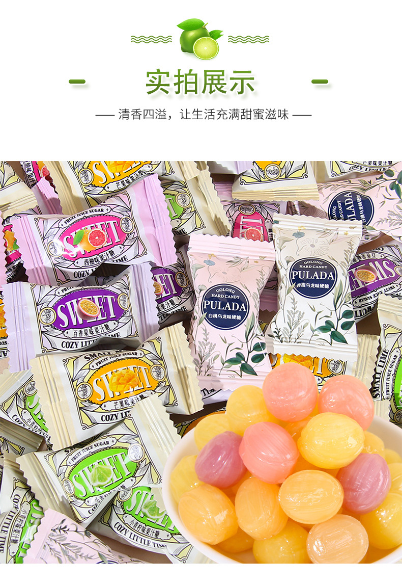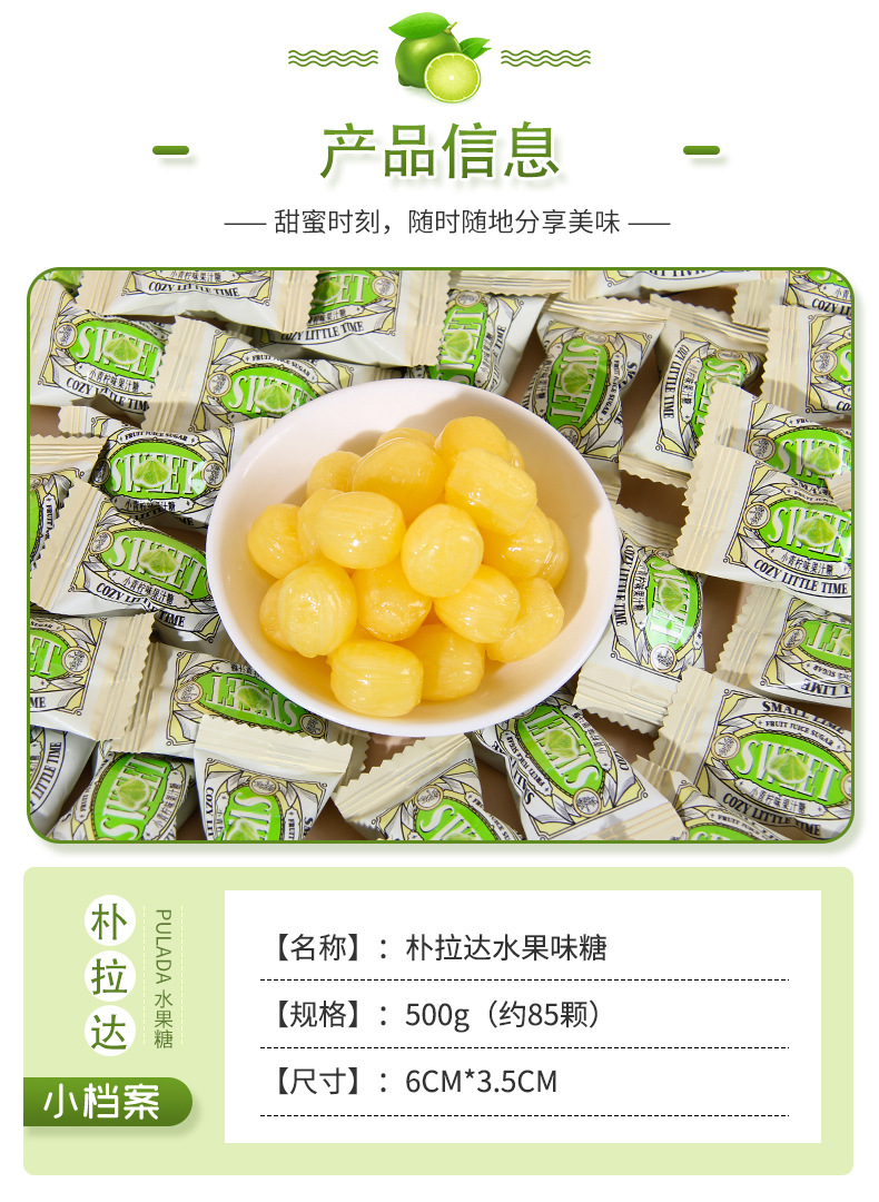 イギリスPULADA朴拉達小青レモンマンゴー混合ジュース味硬糖500g結婚喜糖果間食