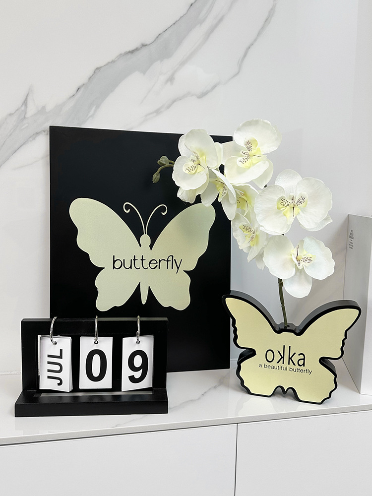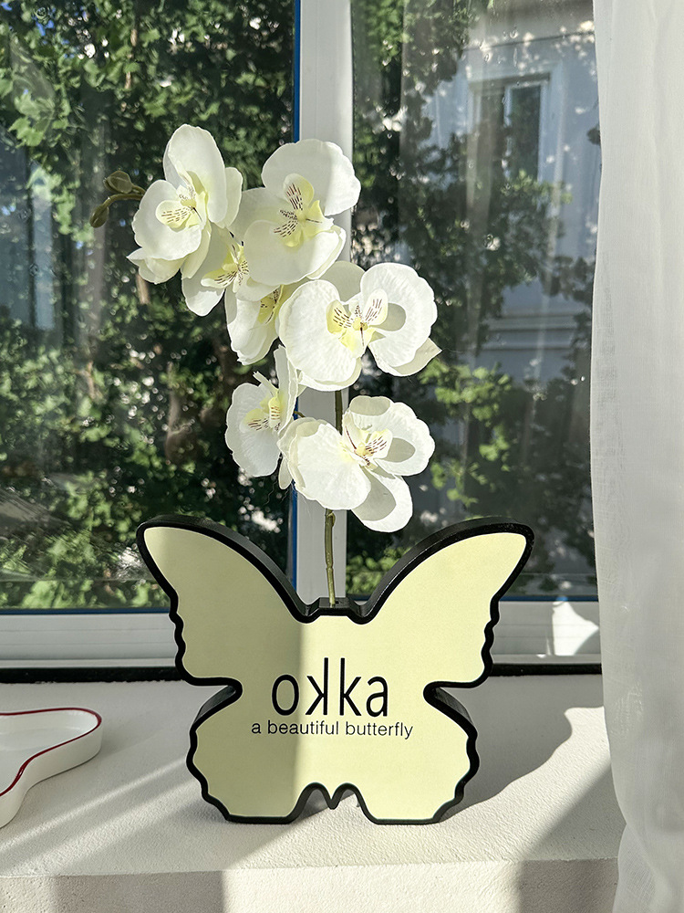 中世スタイルの蝶の花瓶の装飾品、自宅のリビングルーム、玄関ホールのコーヒーテーブル、軽い豪華さとハイエンドのデスクトップ装飾品