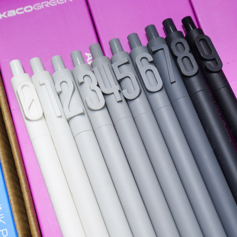 KACOアルファベット数字ペン学生水ペンカラー押し式中性ペン黒芯0.5ロゴ