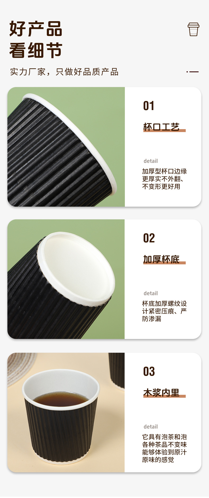 コーヒーカップ使い捨て外付け梱包カップホットドリンクミルクティー断熱紙コップメーカー卸売り段ボールカップ品質が良い