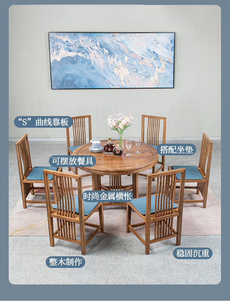 カラー 直径120cm福如東海円卓福如東海ダイニングチェア7点セット,直径120cm福如東海円卓-シングルテーブル,福如東海食事椅子-枚葉