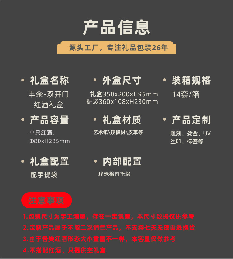 新しいホリデーギフト赤ワインギフトボックス2本の赤ワインワインドライレッドギフト包装箱ティーボックス空箱