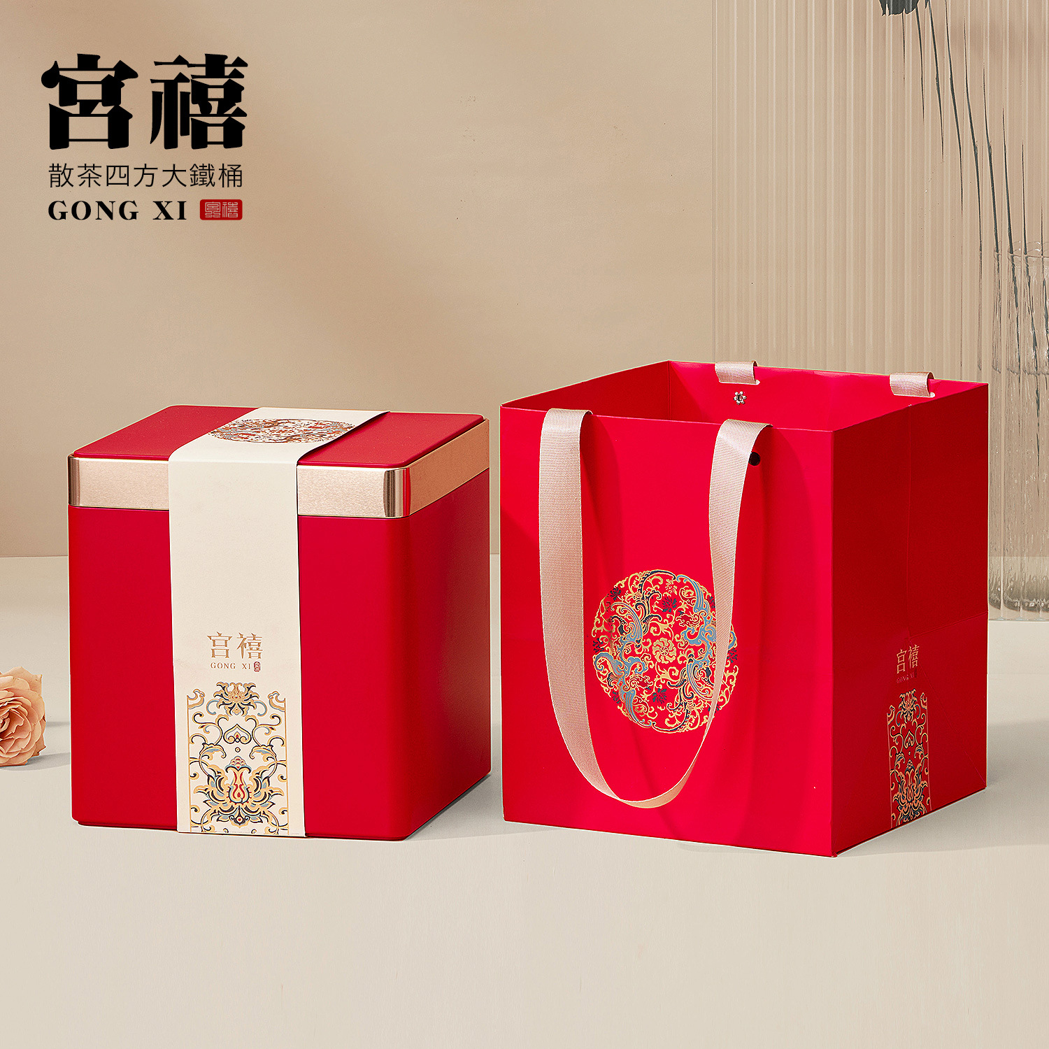角型茶缶鉄缶大容量紅茶大紅袍白茶プーアル散茶通用茶葉包装箱空箱