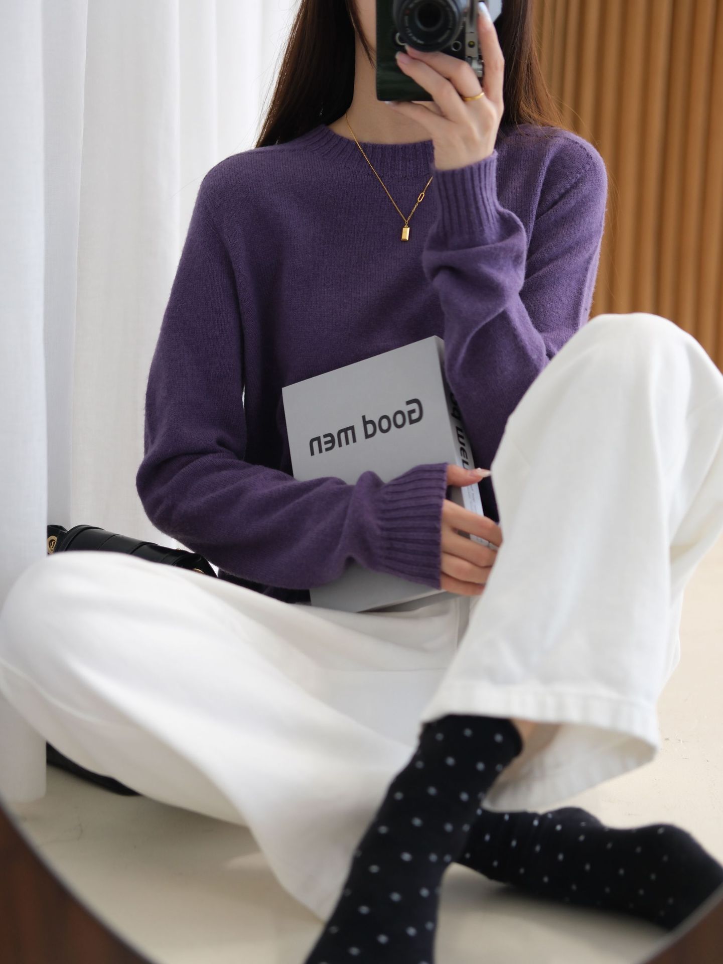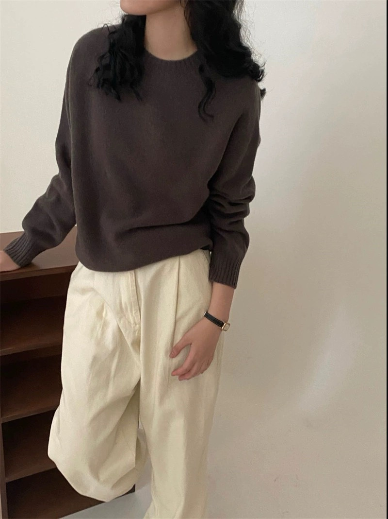 100%纯羊毛2025秋冬新女士宽松圆领纯色套头上衣打底针织衫毛衣