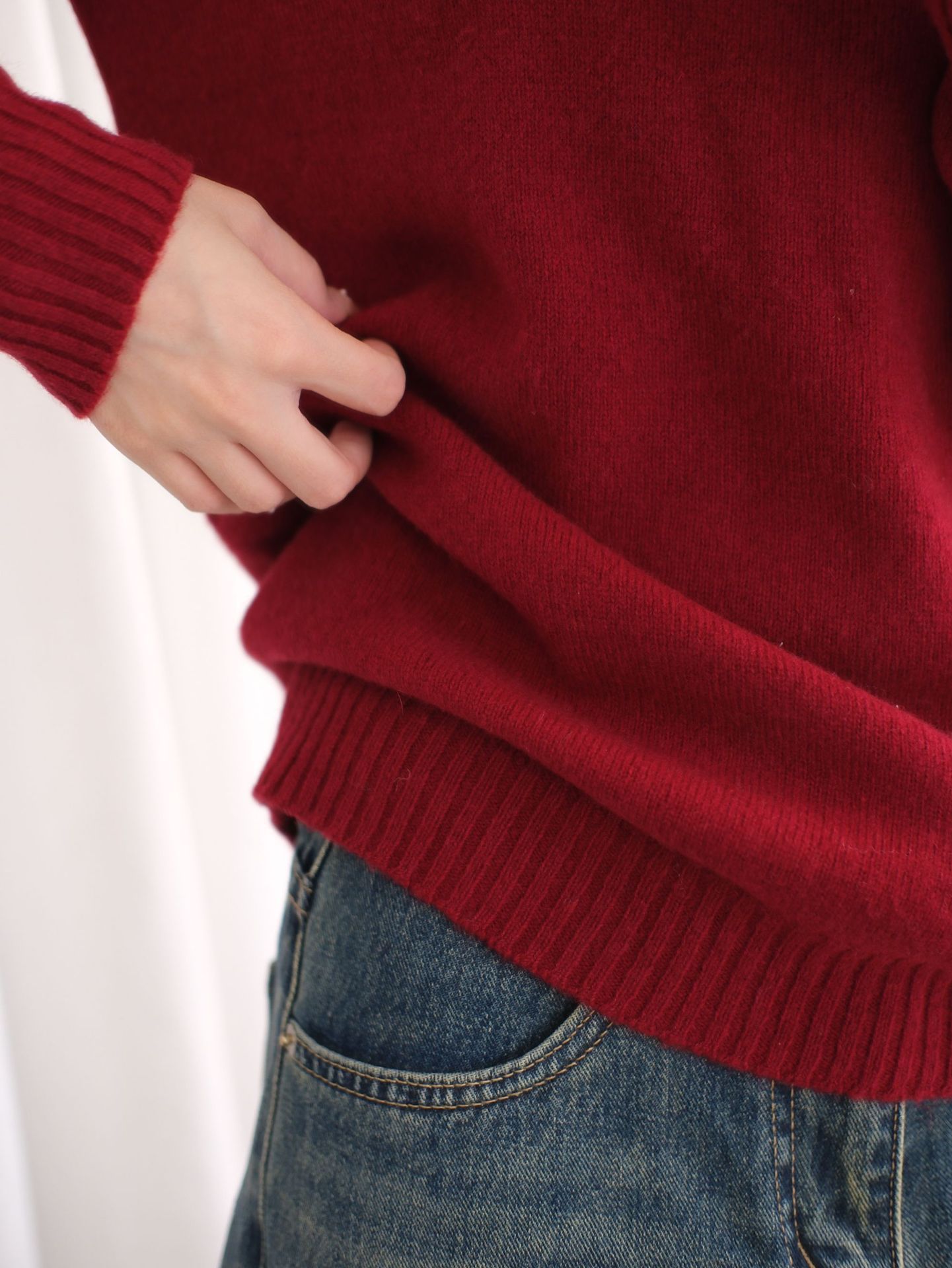 肌感100% ウール一線成衣シームレス秋冬新短金女性半高襟ゆるい底編みセーター