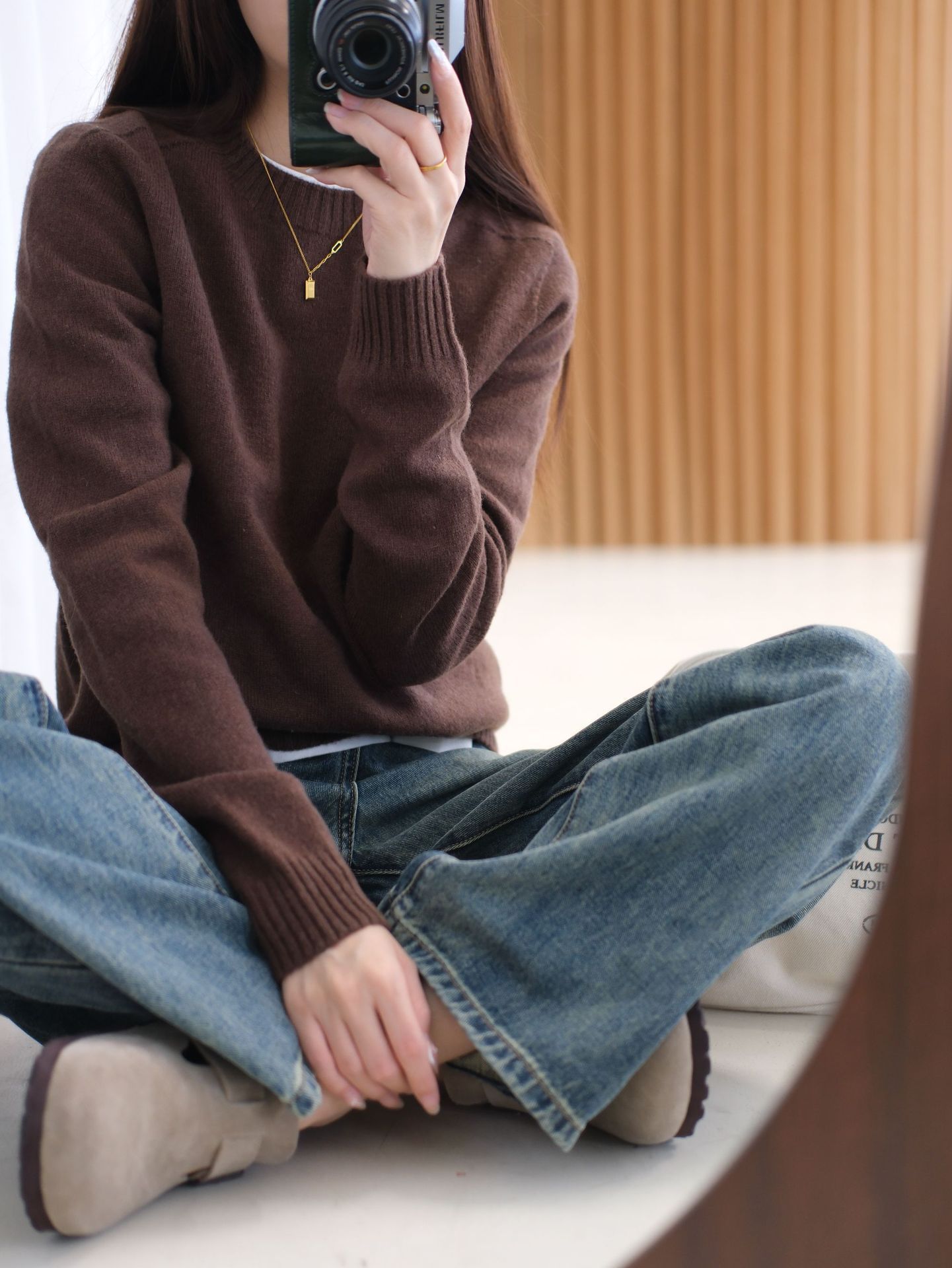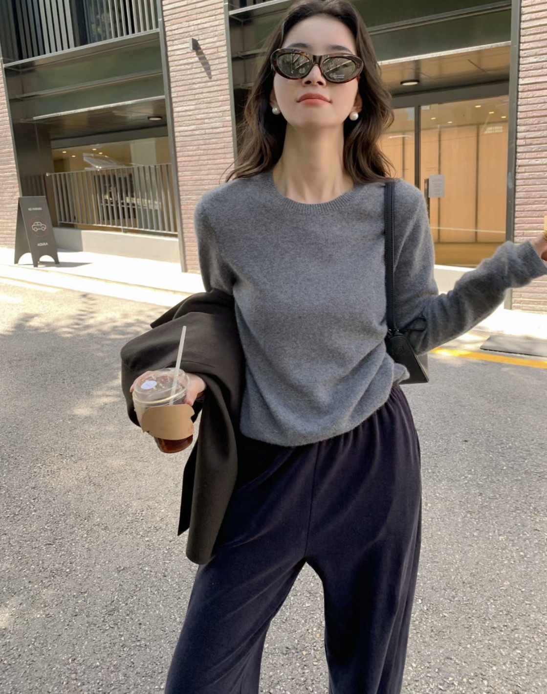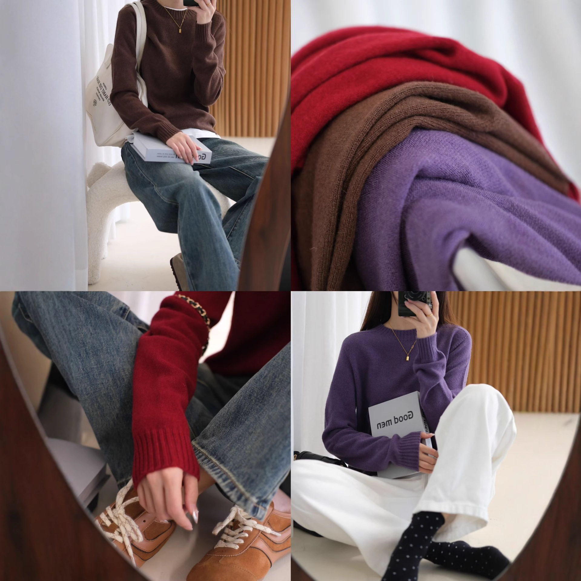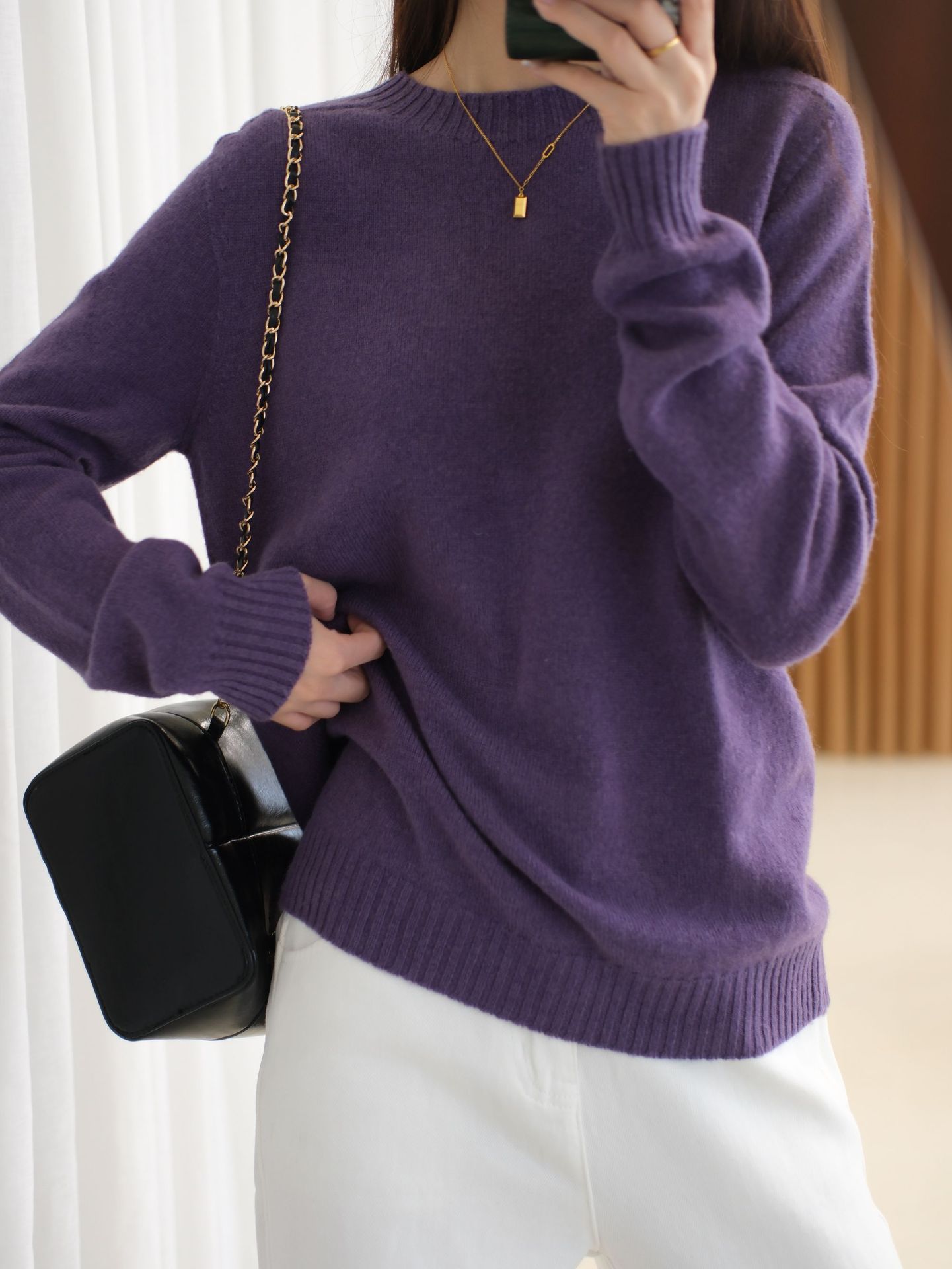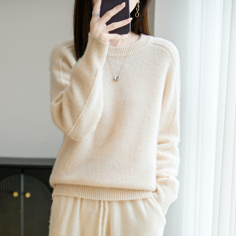 2025秋冬新款100羊毛针织打底衫女长袖圆领毛衣宽松时尚保暖舒适