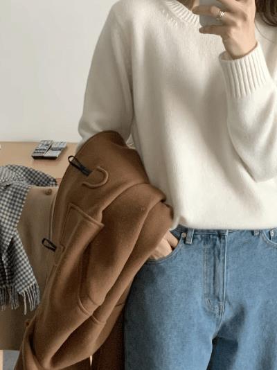 一线成衣羊毛混纺2025秋冬新款修身半高领纯色内搭套头打底针织衫