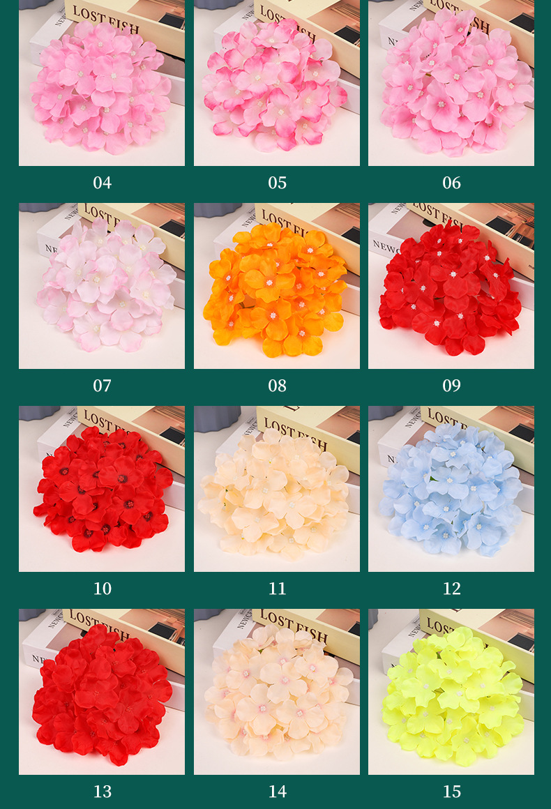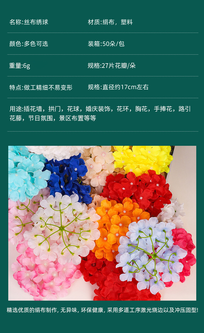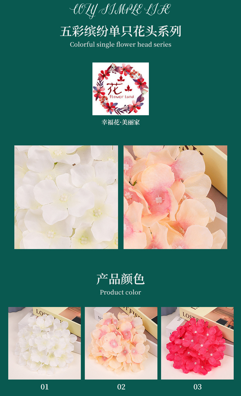 アジサイの花頭、結婚式用の花、シーン装飾、造花、シルクフラワー、花頭、花壁装飾、造花、偽花、越境