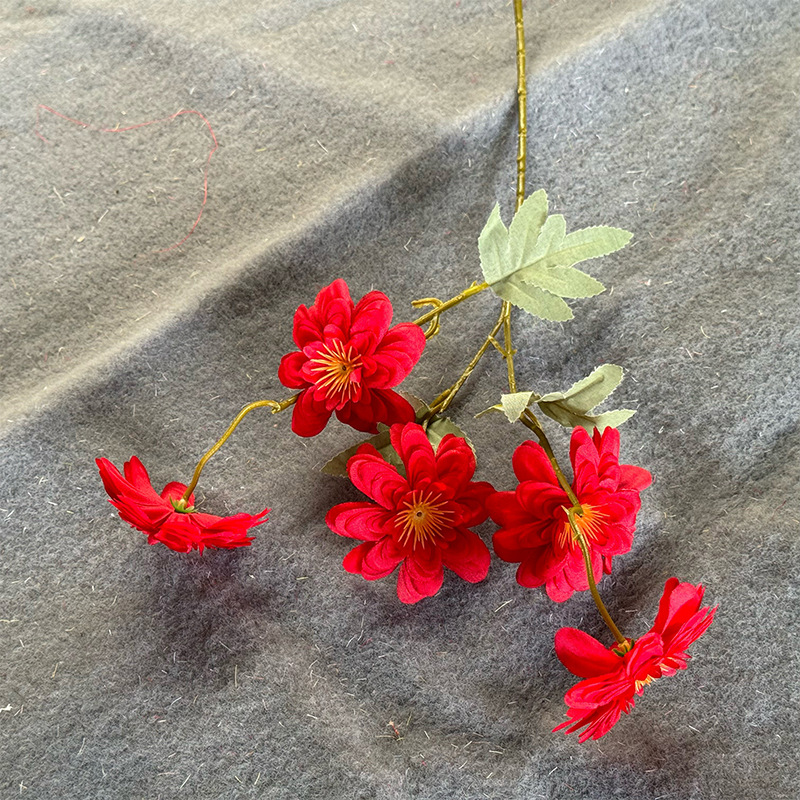 5頭のシミュレーション花の結婚式場の背景壁の装飾花材の越境路は赤い結婚祝いのシミュレーション花の卸売りを導いています。