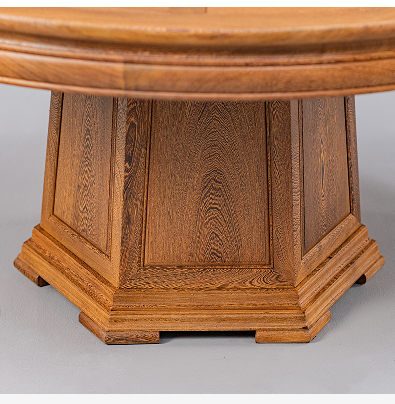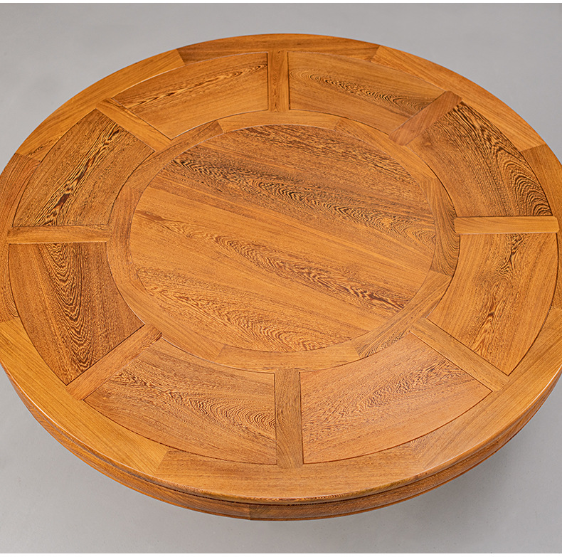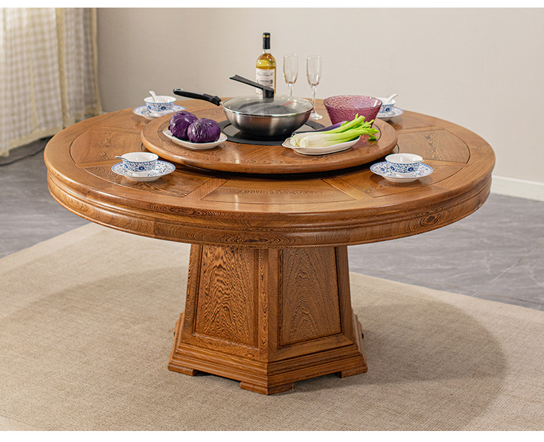 赤い木の家具の鶏の羽の木の鍋の食卓の家庭用の木の大きい円卓の電磁ストーブの一体の食事のテーブル
