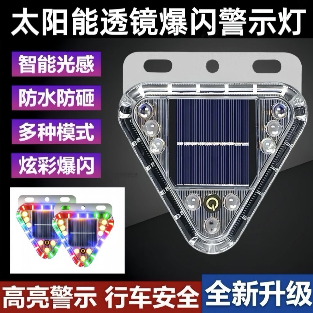 跨境厂家免接线三角太阳能灯爆闪灯摩托车货车尾灯强光警示灯批发