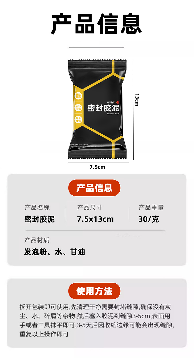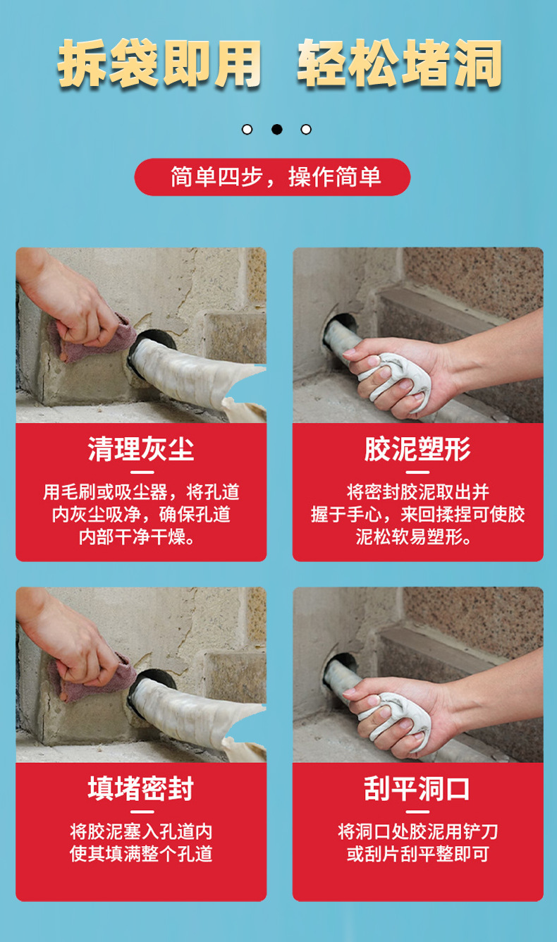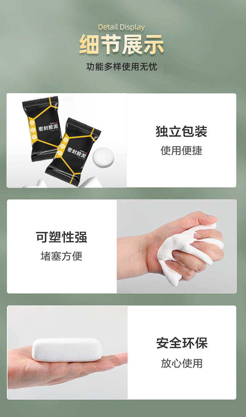 德国密封胶泥堵洞空调孔堵塞泥堵漏填充防水防霉封堵下水道封口泥