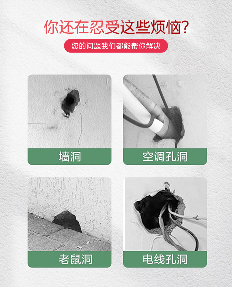 セメントのエアコンの穴を密封して泥を塞ぐ家庭用の防水を充填して穴の神器を塞いで穴の口の壁の泥を補充します。
