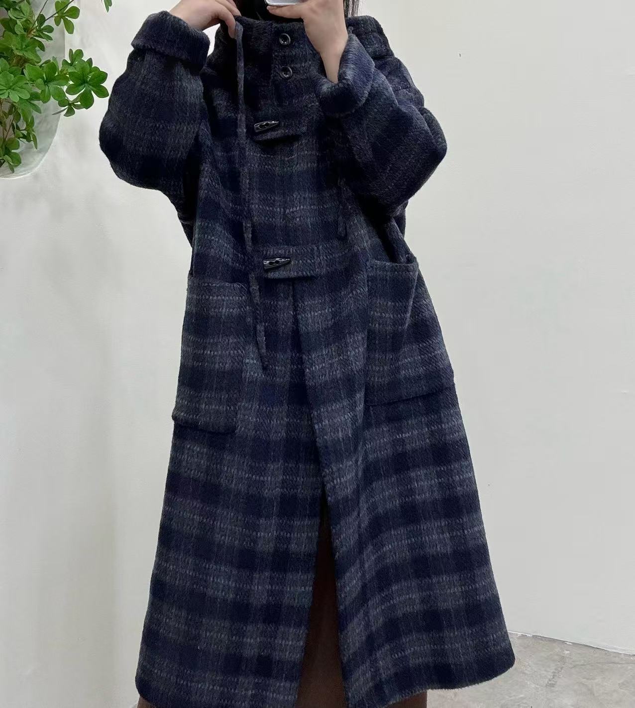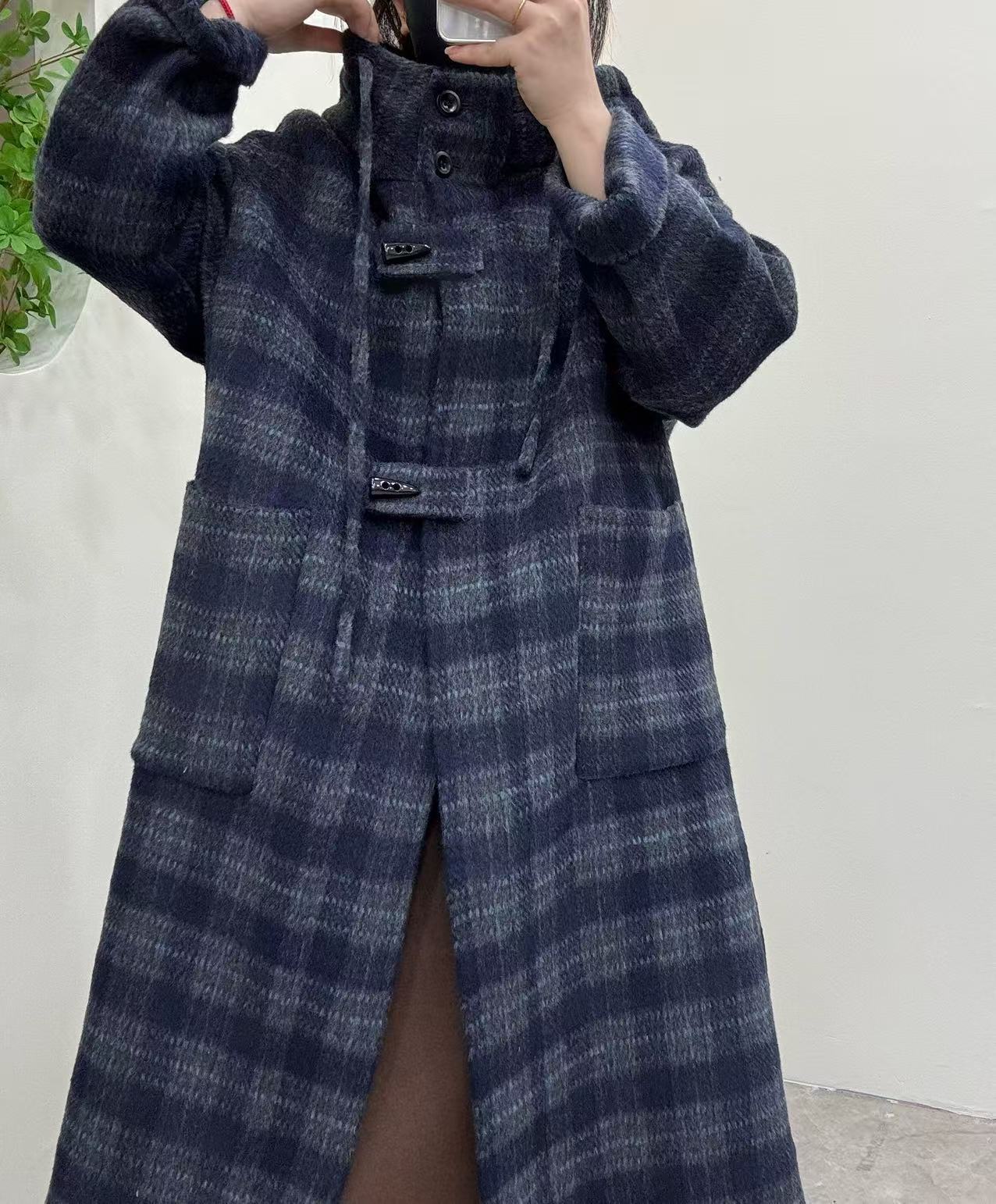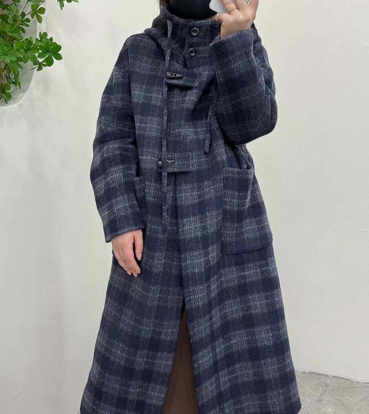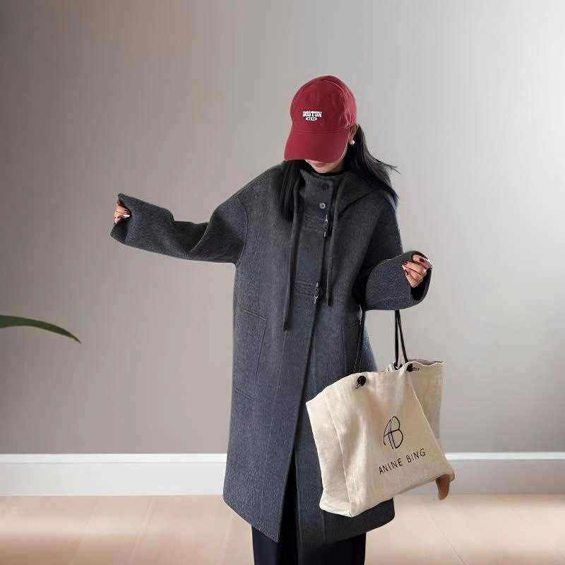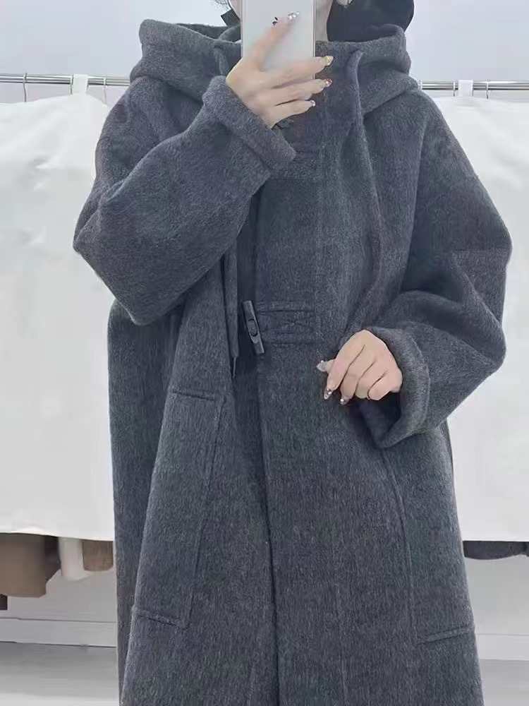 ソウルアカデミー2025秋冬韓国風フード付きホーンボタンワイドバージョンハイエンド増厚拡張両面ウールコート