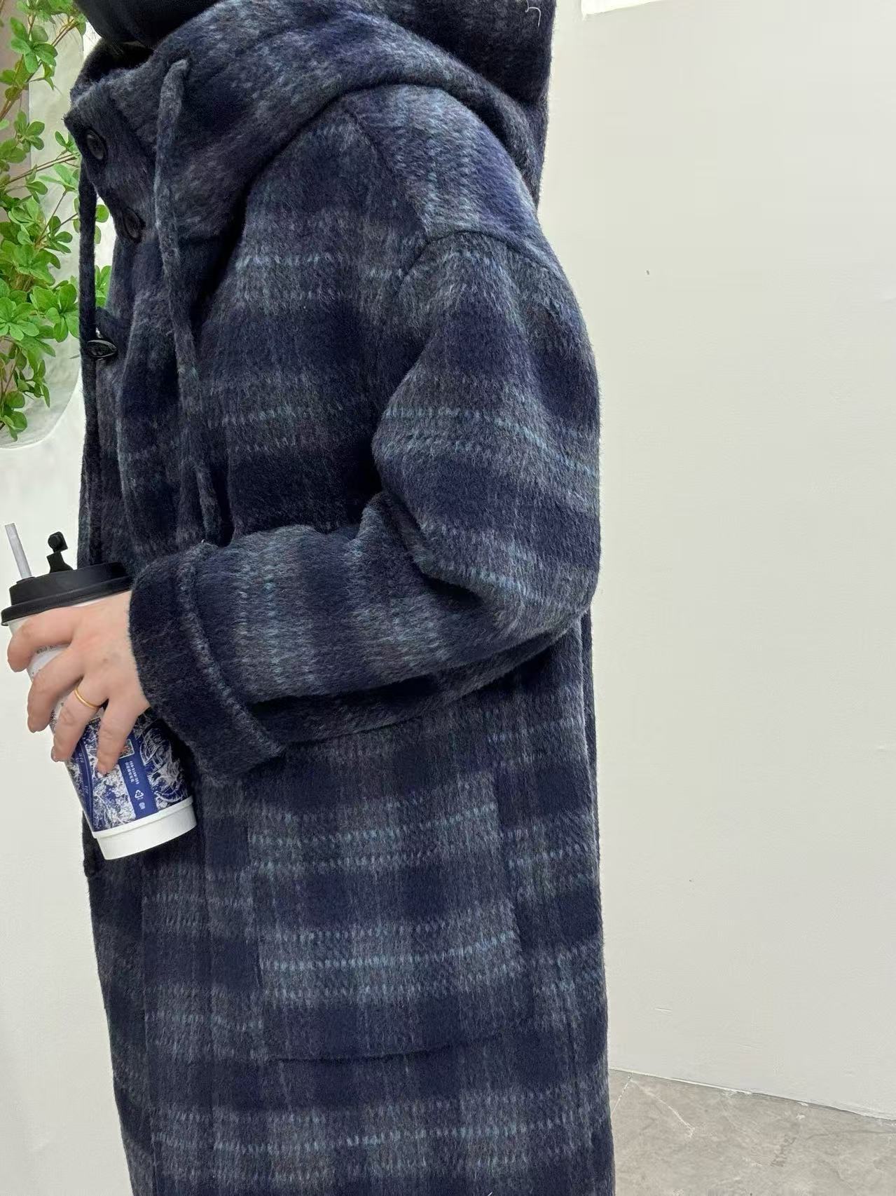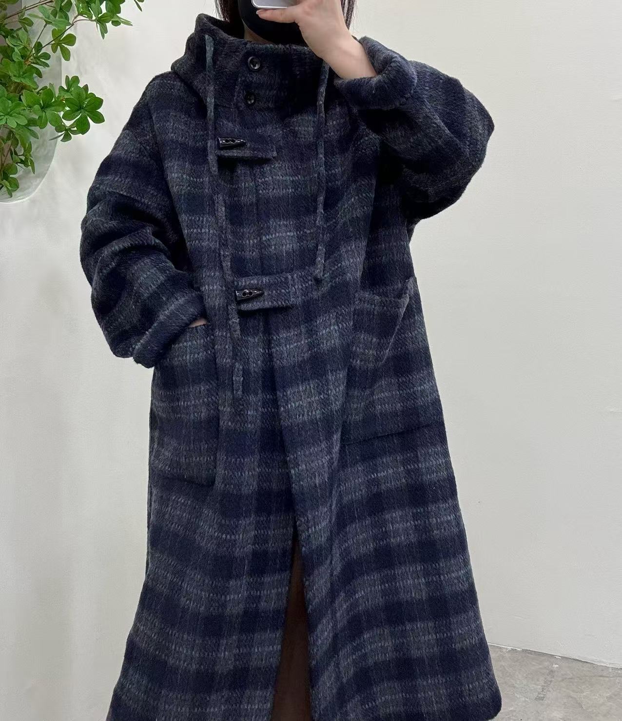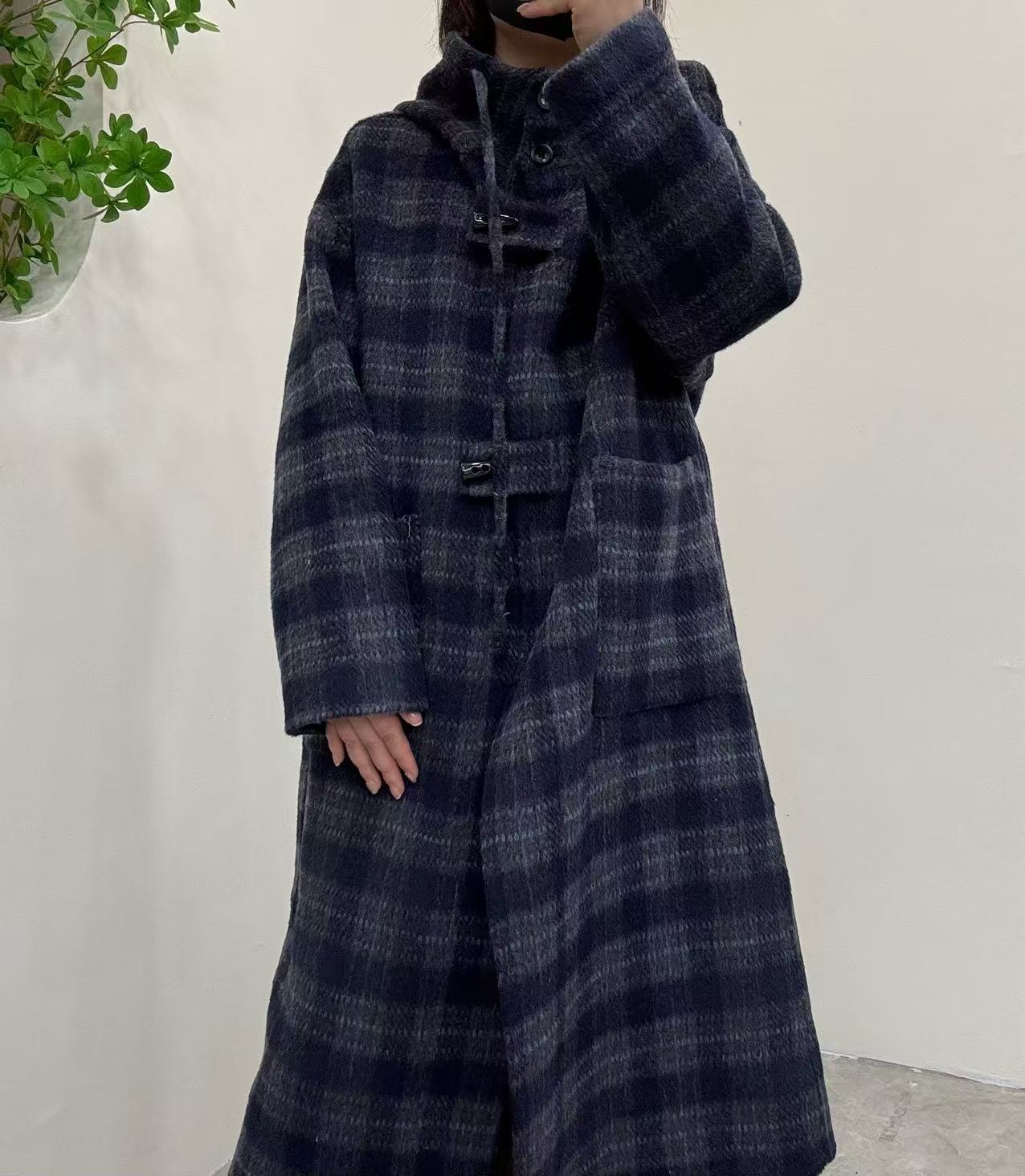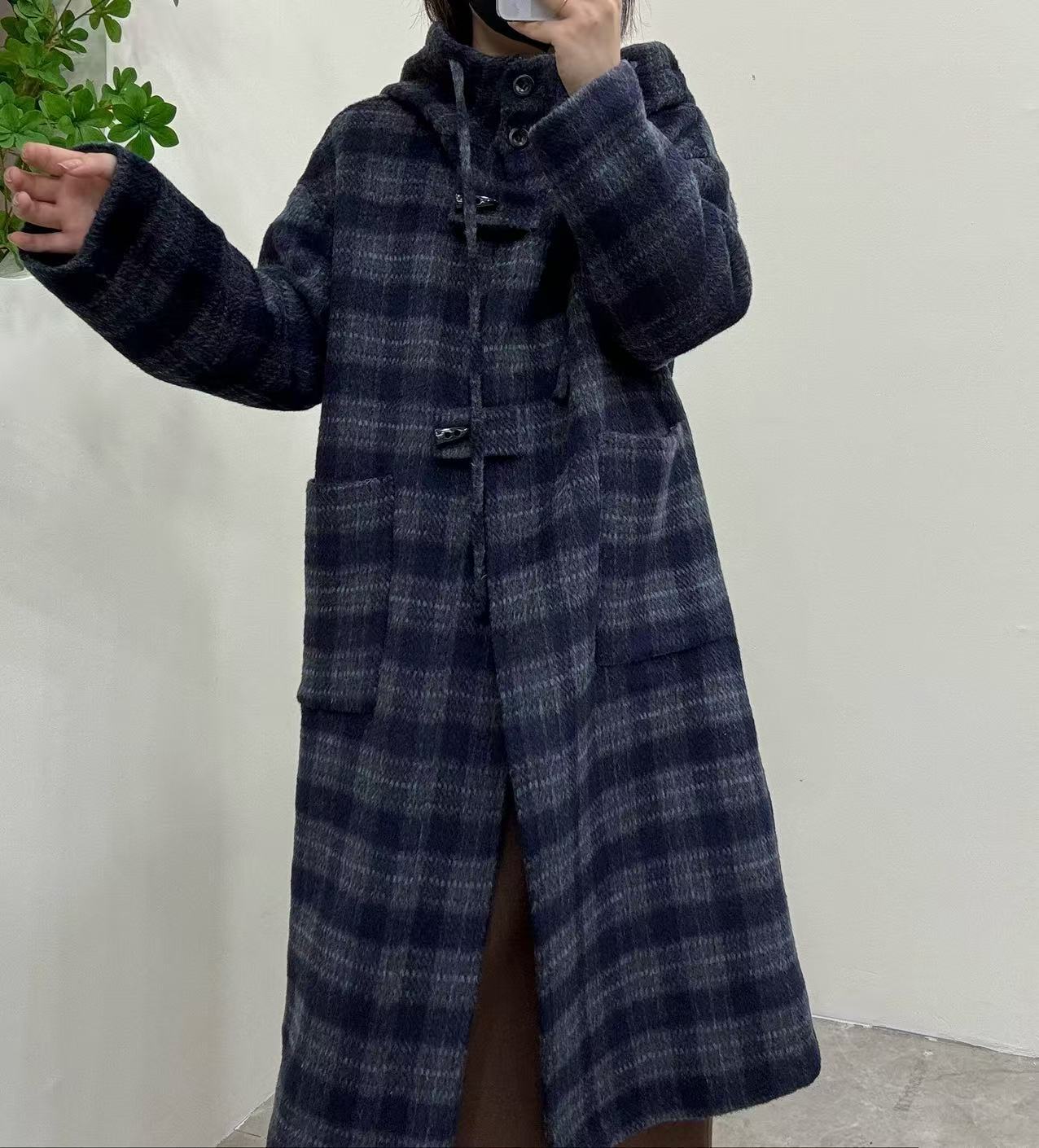 ソウルアカデミー2025秋冬韓国風フード付きホーンボタンワイドバージョンハイエンド増厚拡張両面ウールコート