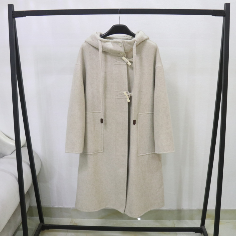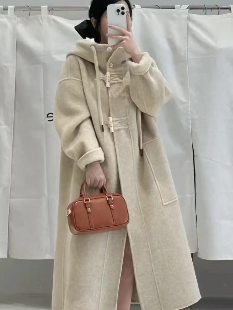 2025秋冬新款韩系宽松高级感双面羊绒大衣女牛角扣连帽羊毛呢外套