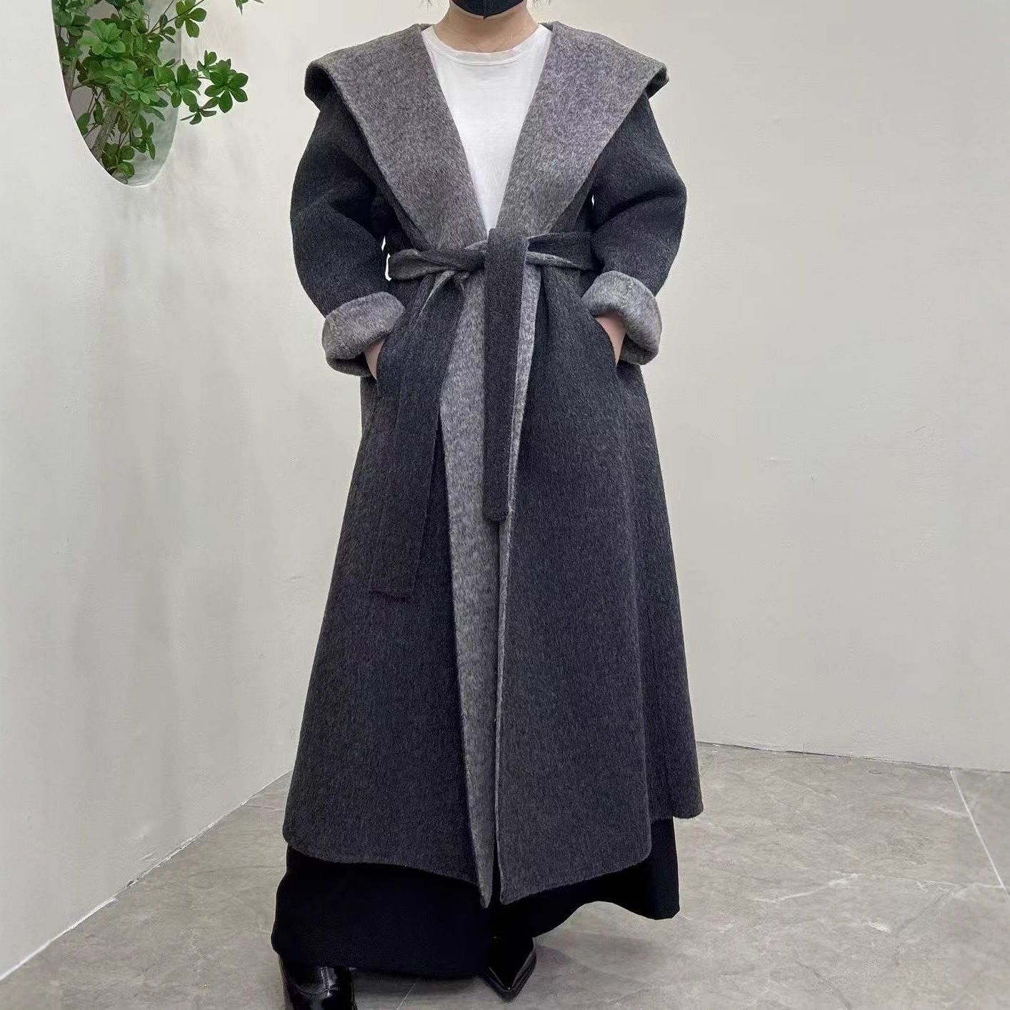 工場直販両面カシミヤコートレディースロング2025新韓国版ストレートフード付きウールコート通勤