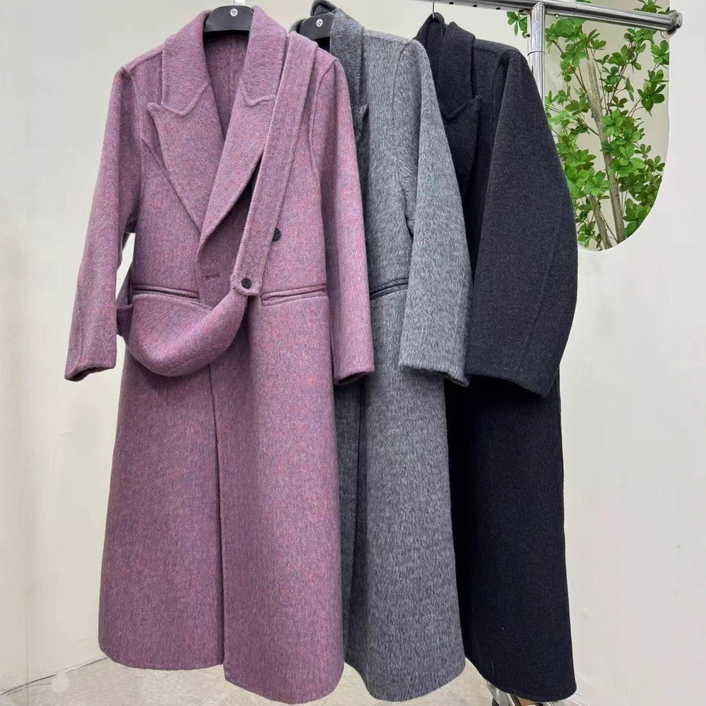 「長期在庫」特別価格2025新作ファッションスモールフレグランススタイル右肩ラウンドネックシンプル万能両面ウールコート