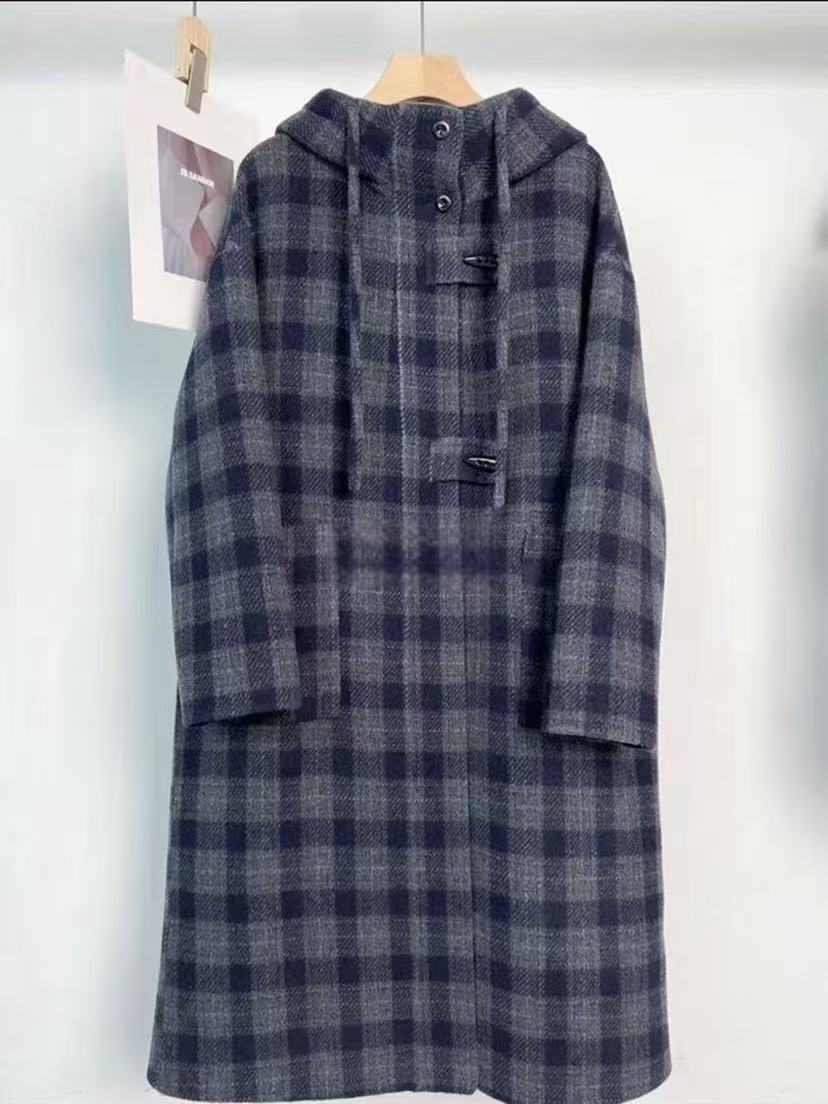 2025 秋と冬の新しい韓国ハイエンドウールコート両面ウールコート女性のホーンボタンフード付きウールコート