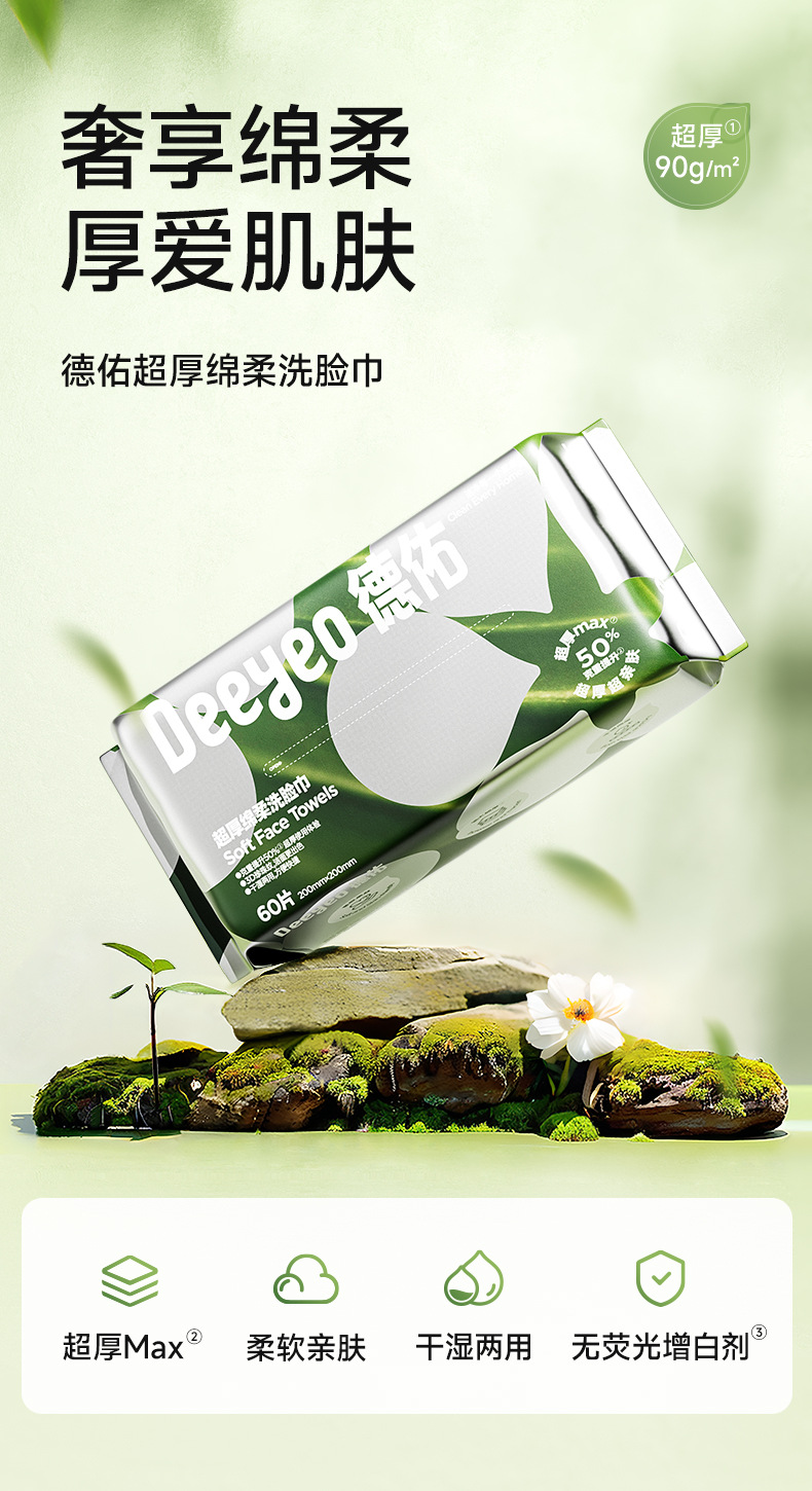 徳佑使い捨て飛鳥洗顔タオル綿柔巾乾湿両用顔拭きタオル厚さ洗顔タオル綿柔巾60枚