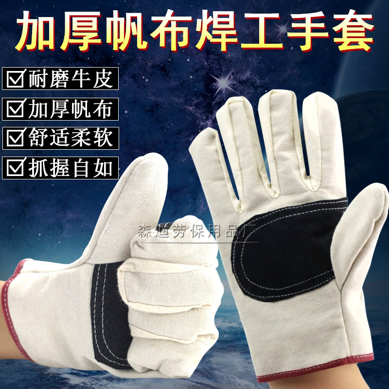 キャンバス手袋耐摩耗性労働保護電気溶接肥厚手の建設現場作業