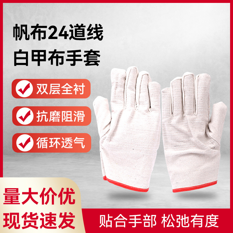 帆布手袋卸売り黄甲24線二重厚綿布メーカー鋼工場炭鉱電気溶接手袋労働保護用品