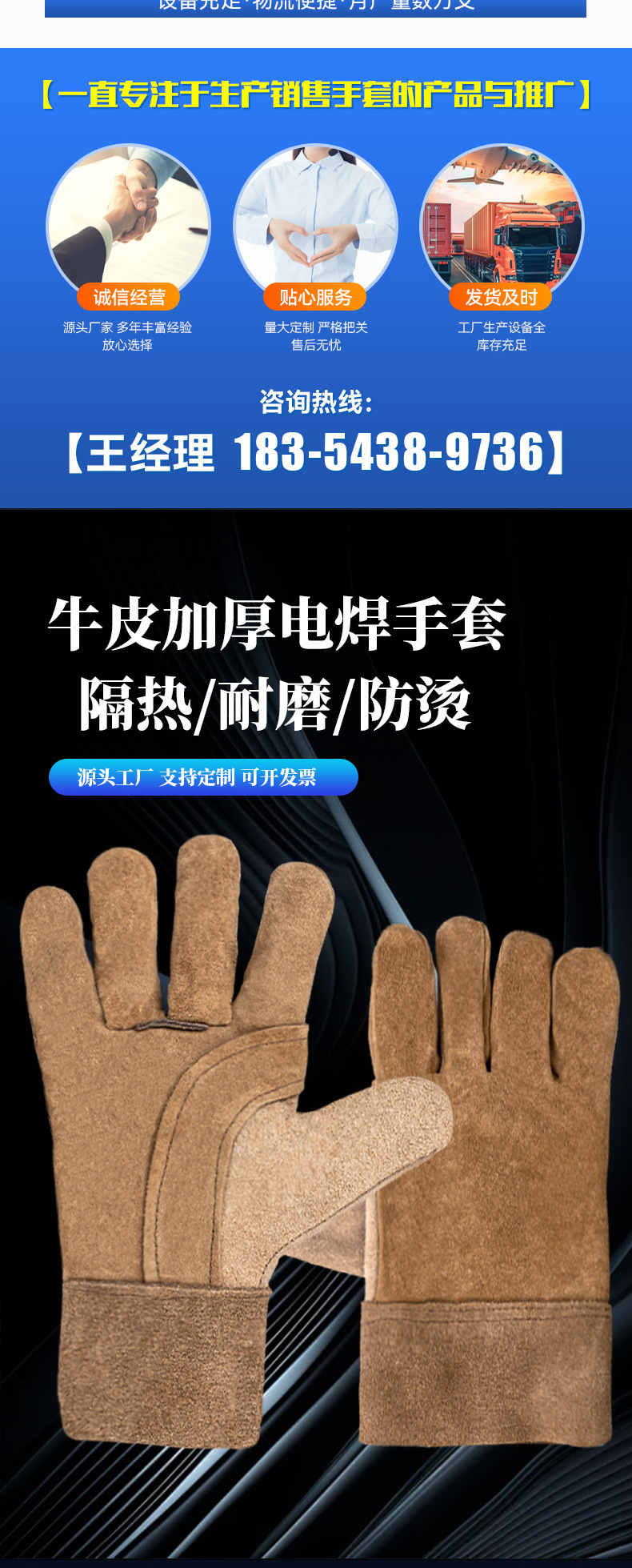 牛革電気溶接手袋断熱溶接工溶接防護用品全皮全掌耐摩耗性厚い工事現場手袋
