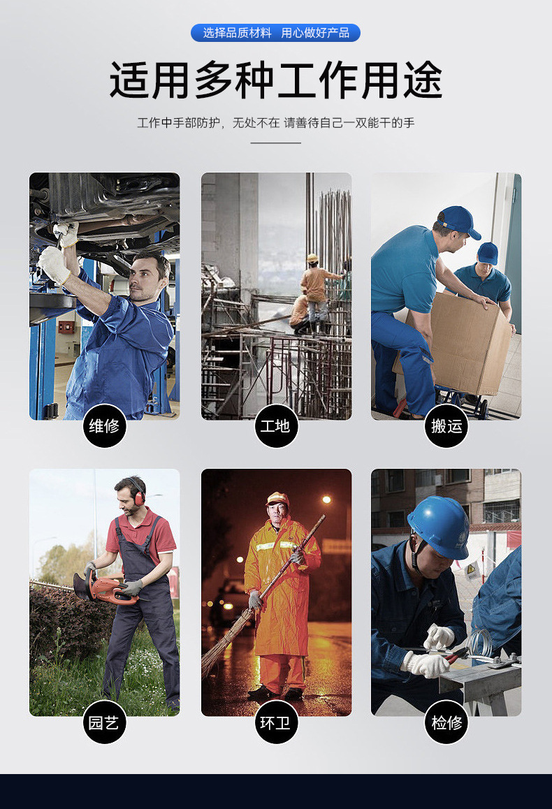 耐摩耗性の手袋、労働保護用手袋、建設現場作業用手袋、工場卸売、綿製、耐刺傷性、黒、軽量、通気性、厚手