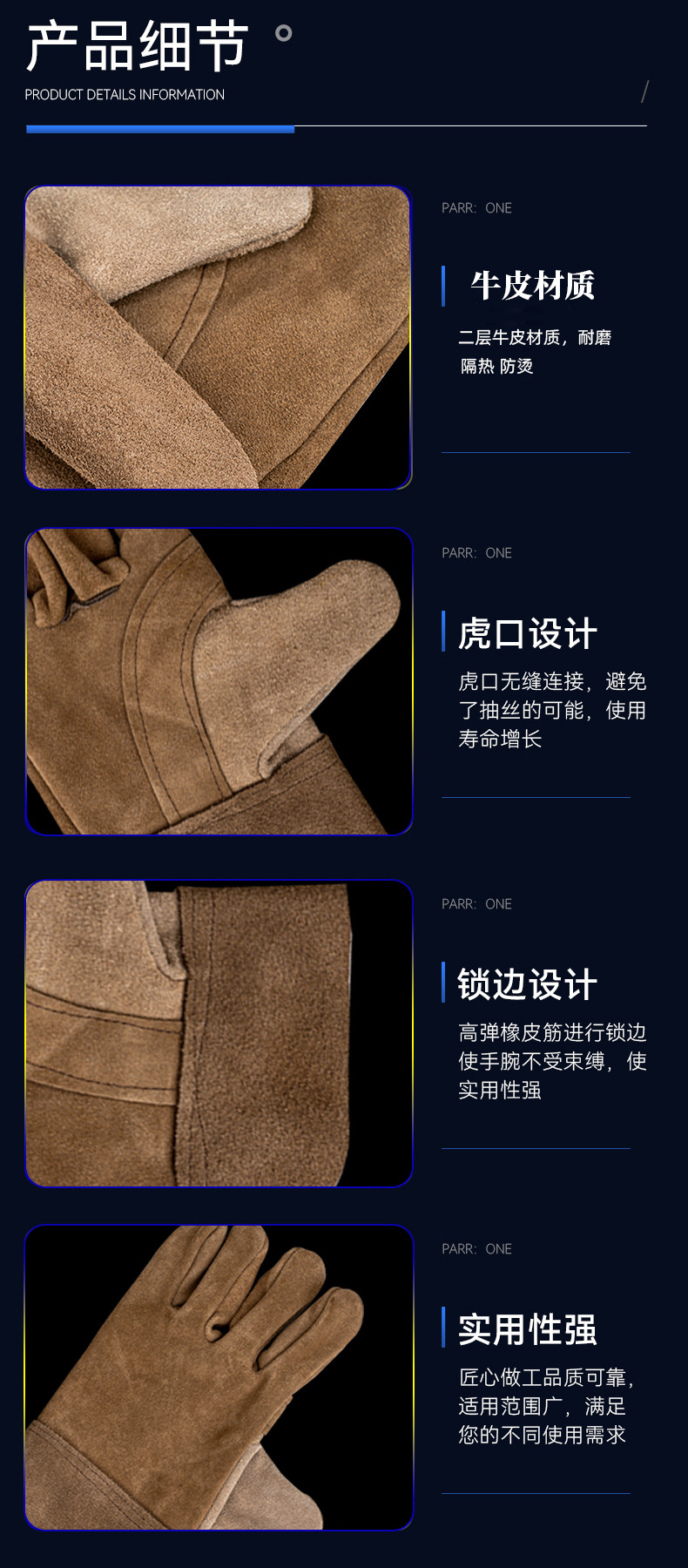 电焊牛皮手套 耐磨阻燃防割隔热电焊焊接手套 牛皮劳保用焊工手套