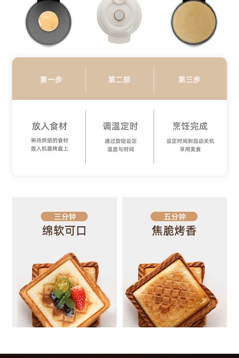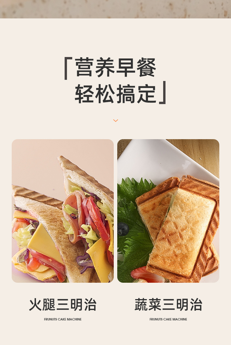 Frunutsサンドイッチ朝食機押縁多機能家庭用小型トースト運転手ワッフル機トースター