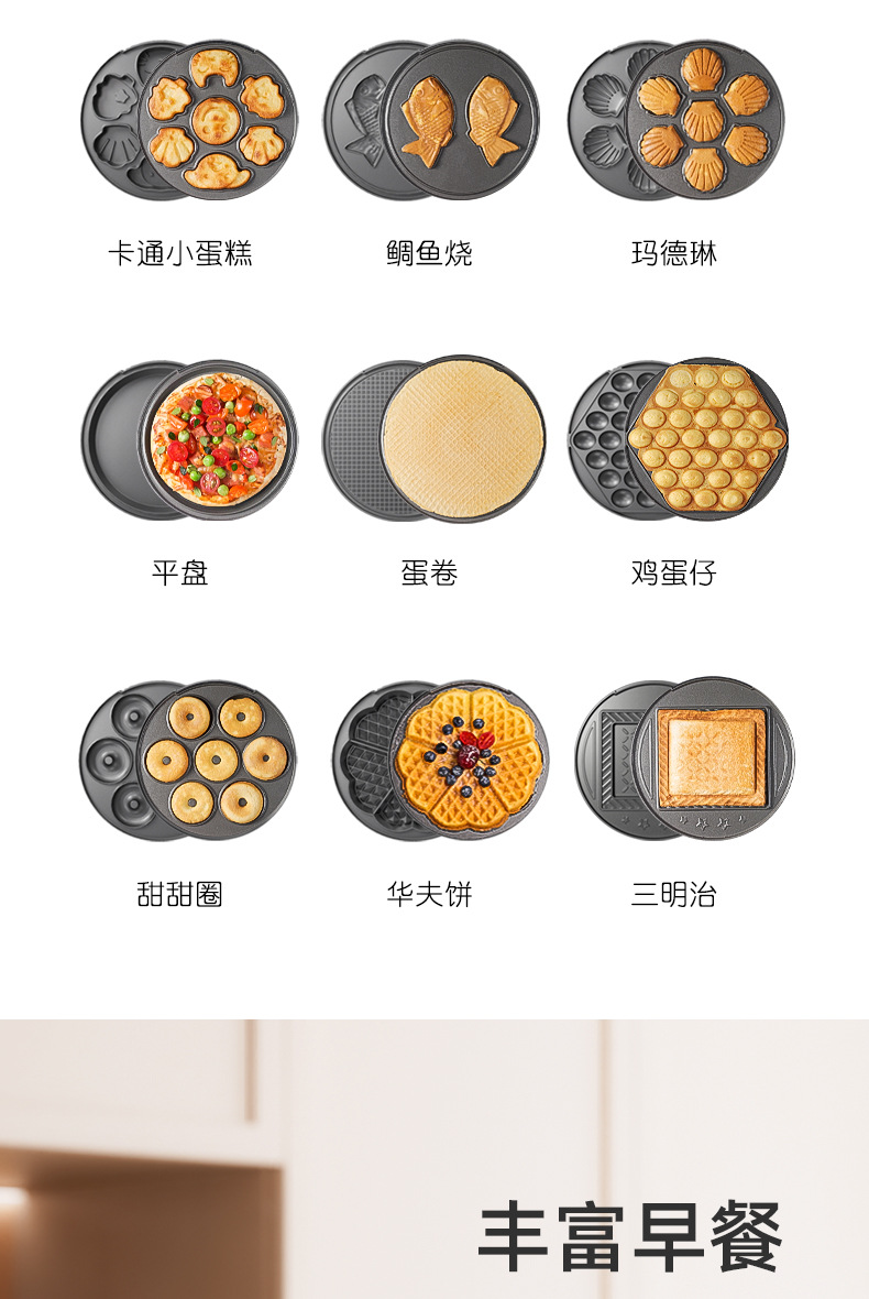 跨境早餐机多功能华夫饼三明治机蛋卷华夫饼机电饼铛家用鸡蛋仔器