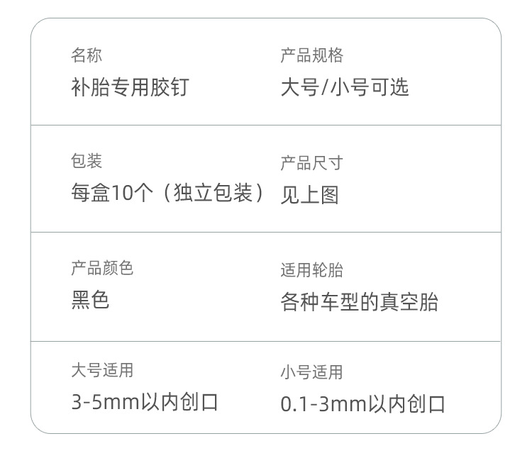 タイヤ補修用ネイル小/1本,タイヤ補修用大釘/1本,タイヤ修理用ネイル大/1箱10本入り,タイヤ補修用ネイル小/1箱10本入り,タイヤ補修用ネイル 大サイズ5本+小サイズ5本/1箱,タイヤ補修用ネイル Sサイズ10本+Lサイズ10本/2箱