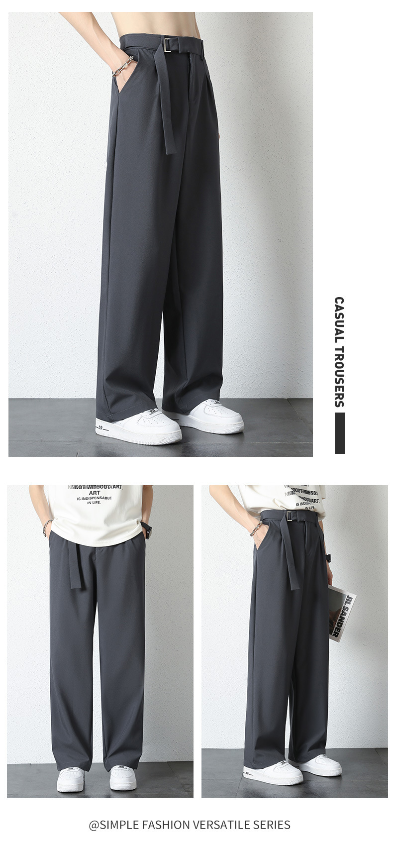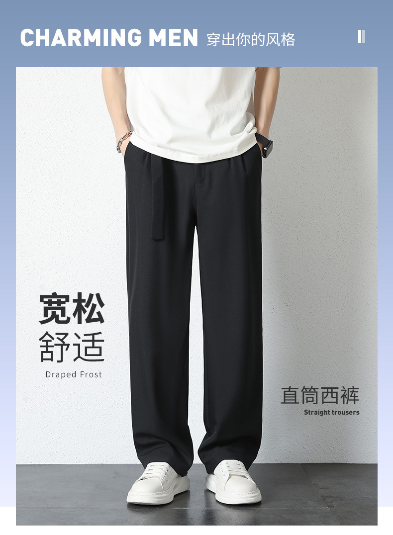 純色のカジュアルなスーツのズボンのスーツの男性の春と秋の軽い豪華な垂れ下がった感じのズボンのゆったりしたまっすぐな筒の広い足の長いズボンの男性