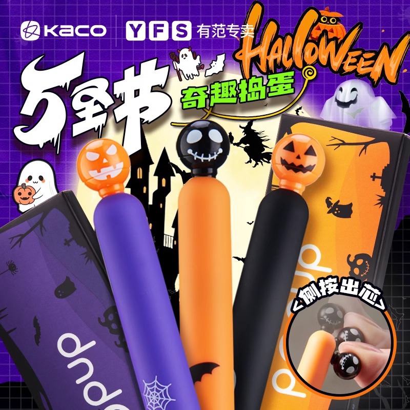 Lingyue Qiqu Trick or Treat ゲルペンセット 3 パック プッシュ式スマイリーフェイス 学生筆記用具 速乾性 大容量