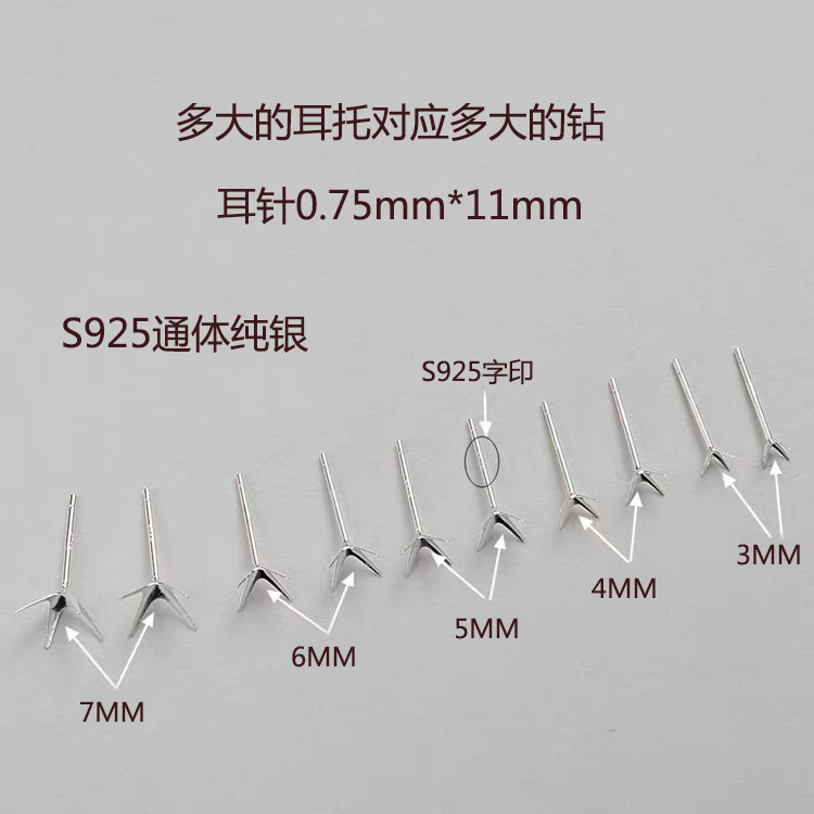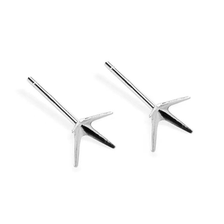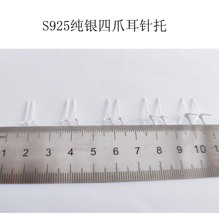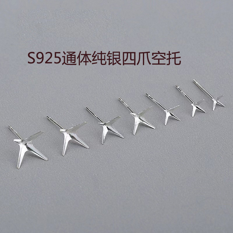 S925純銀耳針ピアス四爪空托珠真珠手作りイヤリングDIY石イヤリングアクセサリー
