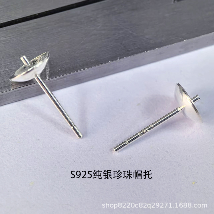 S925純銀ピアス半製品耳針と空托DIY粘半真珠イヤリングビーズ盤碗針耳飾り