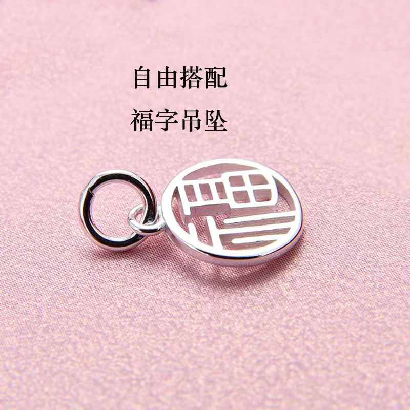 S925純銀の透かし彫りの福の字のペンダントDIYの手作りのひものブレスレットのネックレスのペンダントの手作りの数珠の編みの部品