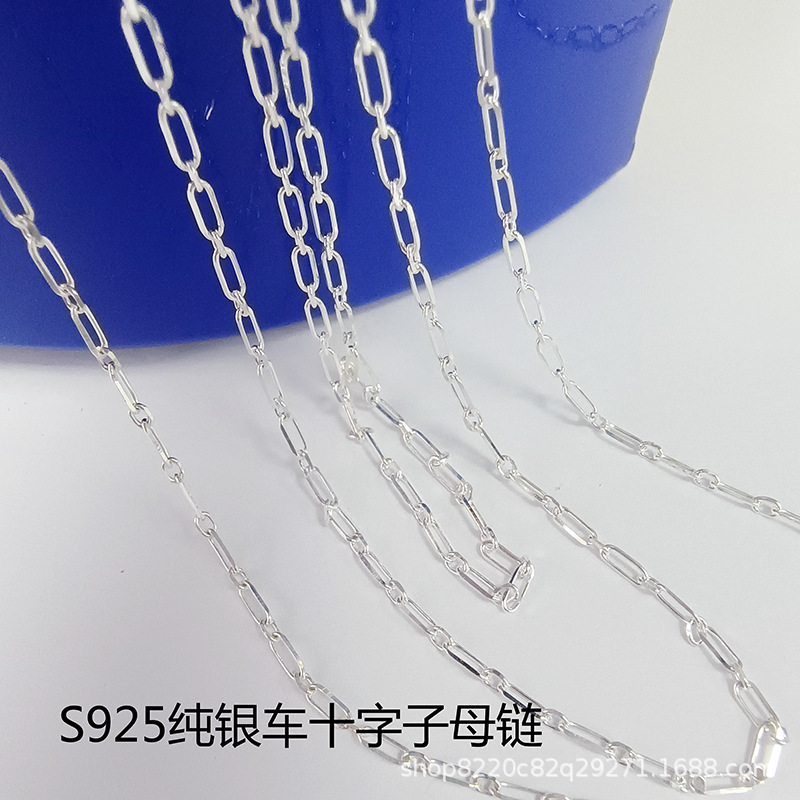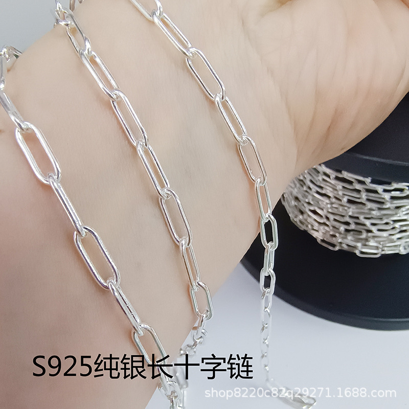 S925純銀長十字鎖四角長十字楕円鎖DIY環相ボタン散鎖銀鎖材料