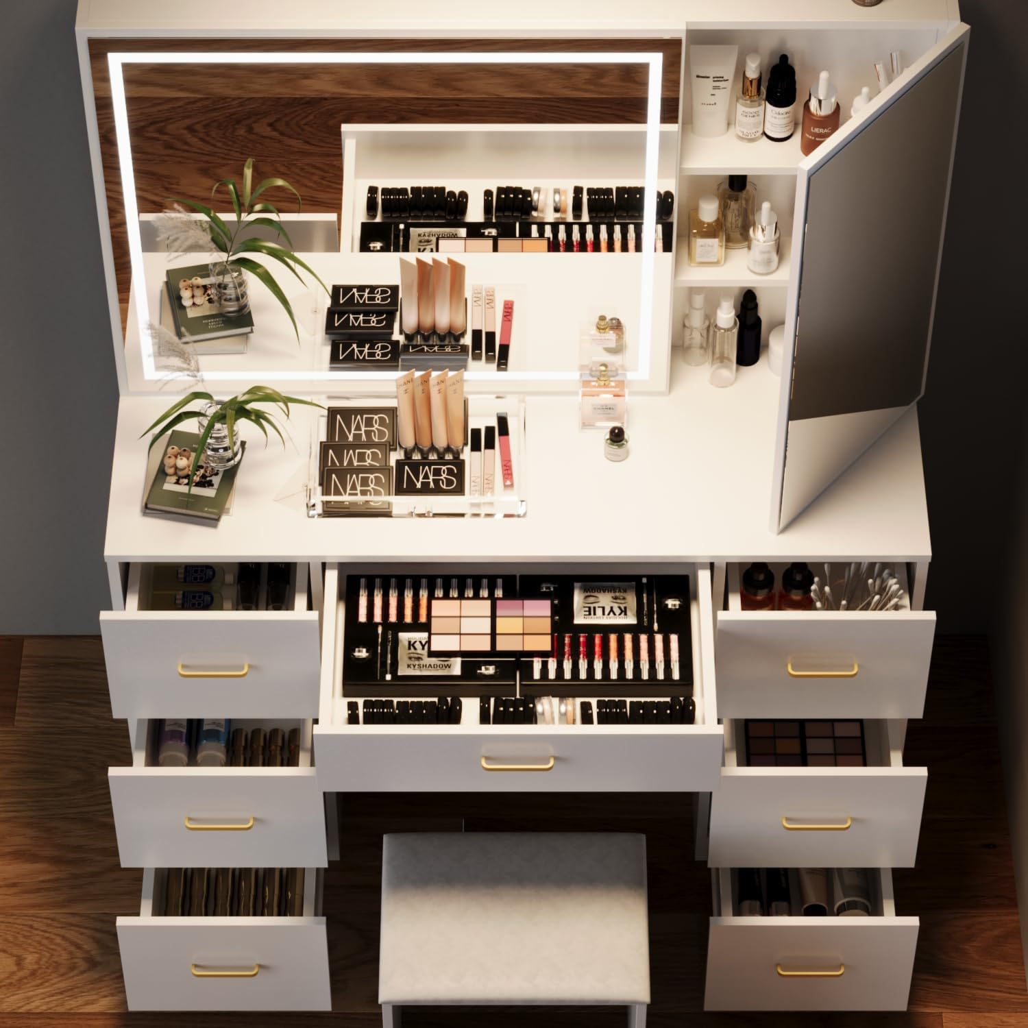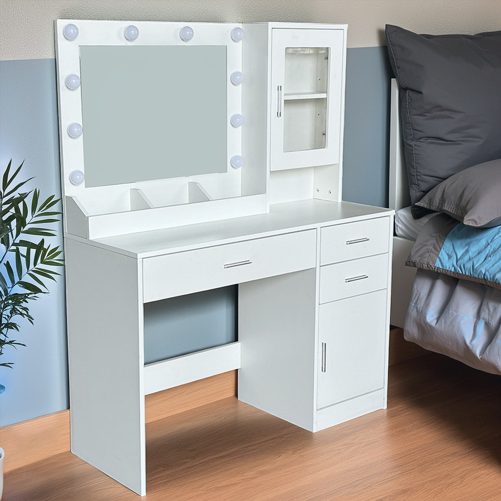 ‌ 北欧の小さなアパート LED メイクアップライト付きドレッシングテーブルインスタイルの寝室の化粧テーブルライト高級多機能収納テーブル