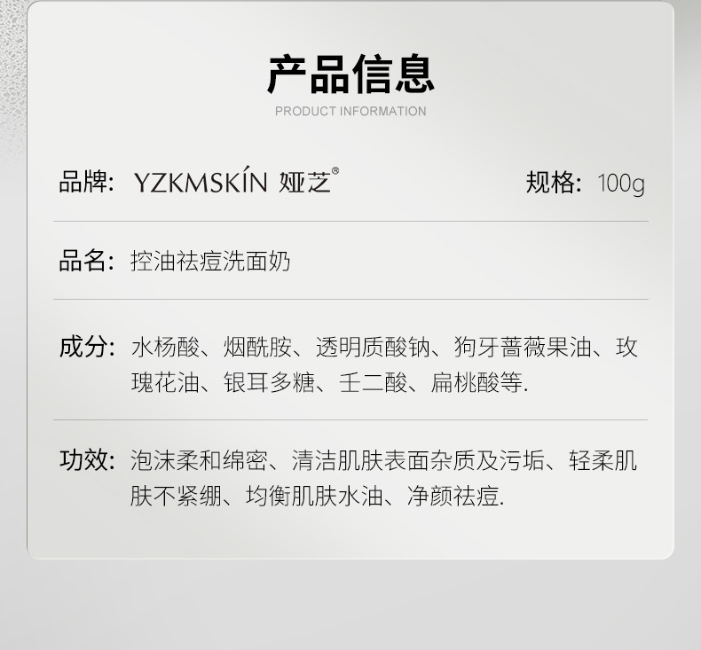 名称 YZKMS Yazhi 男性と女性のマイルド保湿アミノ酸洗顔料オイルコントロールニキビクレンジング毛穴センテラアジアティカ抗ニキビ洗顔料濃密泡マイルド保湿クレンジングミルク洗顔料