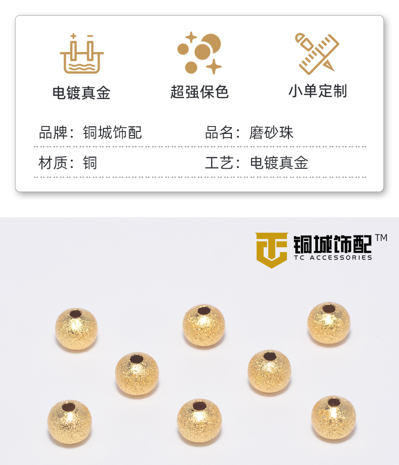 色落ち防止14K金メッキつや消し小金珠 手作りDIYビーズブレスレット ルースビーズ パールネックレス ビーズスペーサー 真金メッキ銅