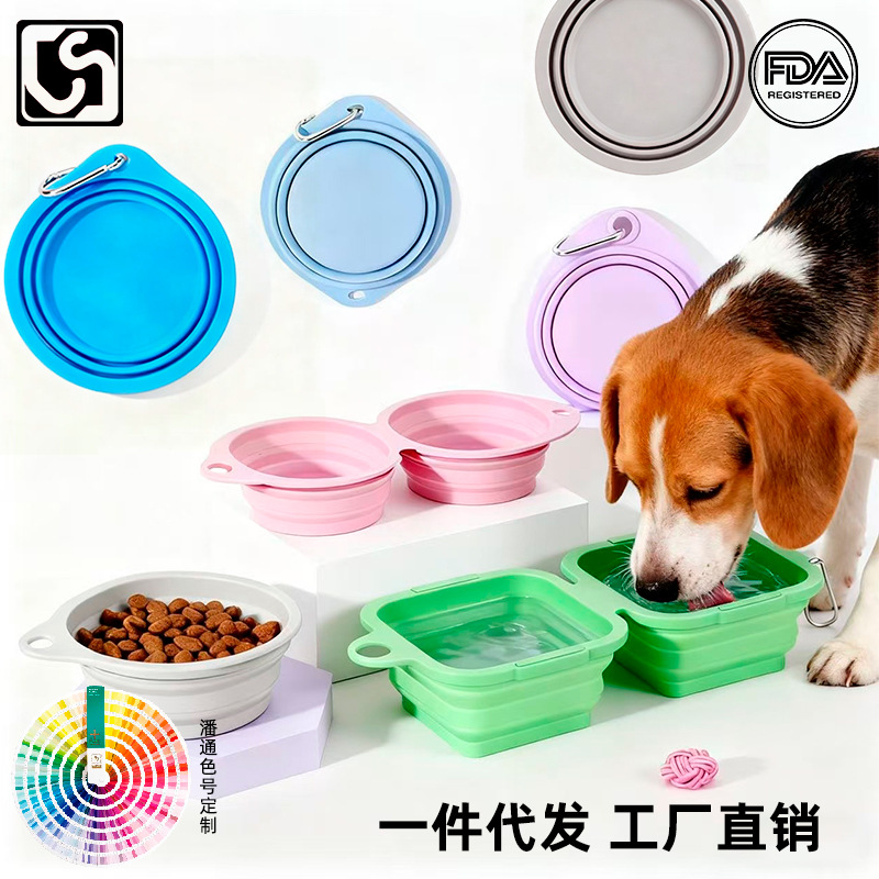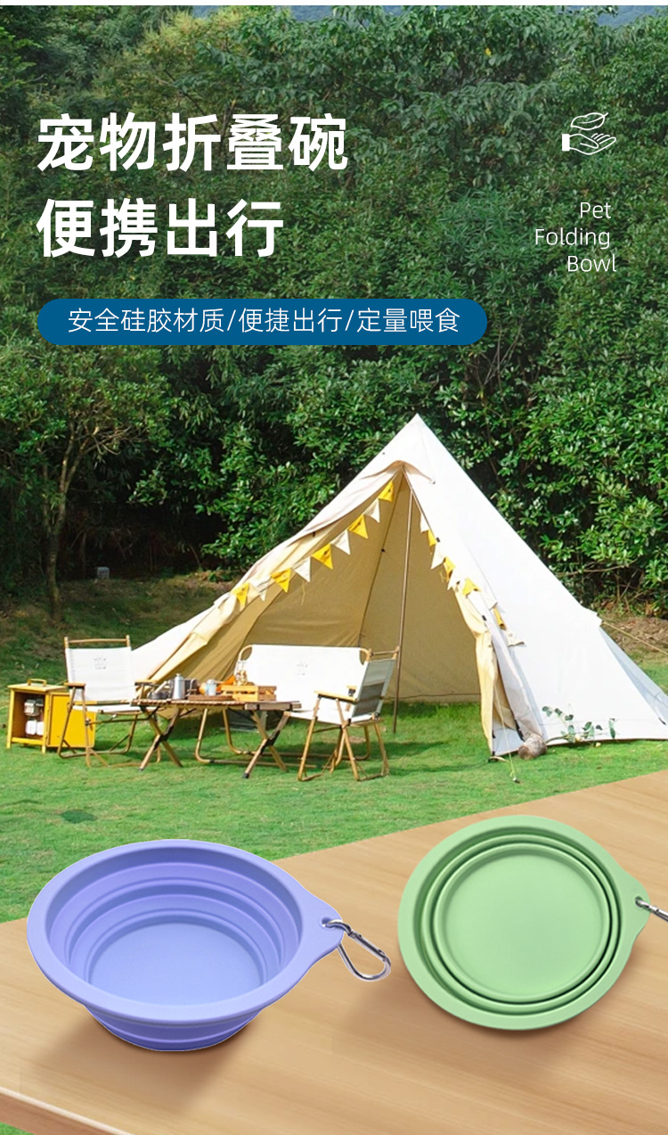 ペットの折り畳み碗の屋外の携帯用犬の碗は旅行に出かけます。