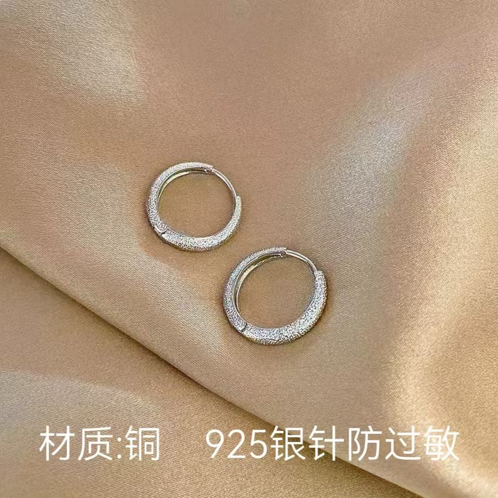 925银时尚素圈耳扣网红爆款个性简约气质磨砂铜耳环高级精致耳饰