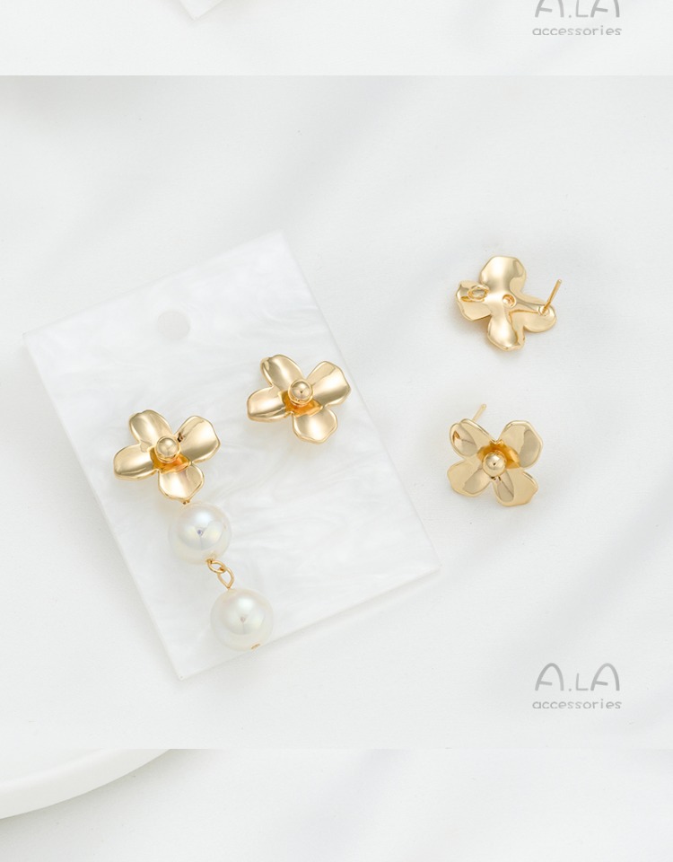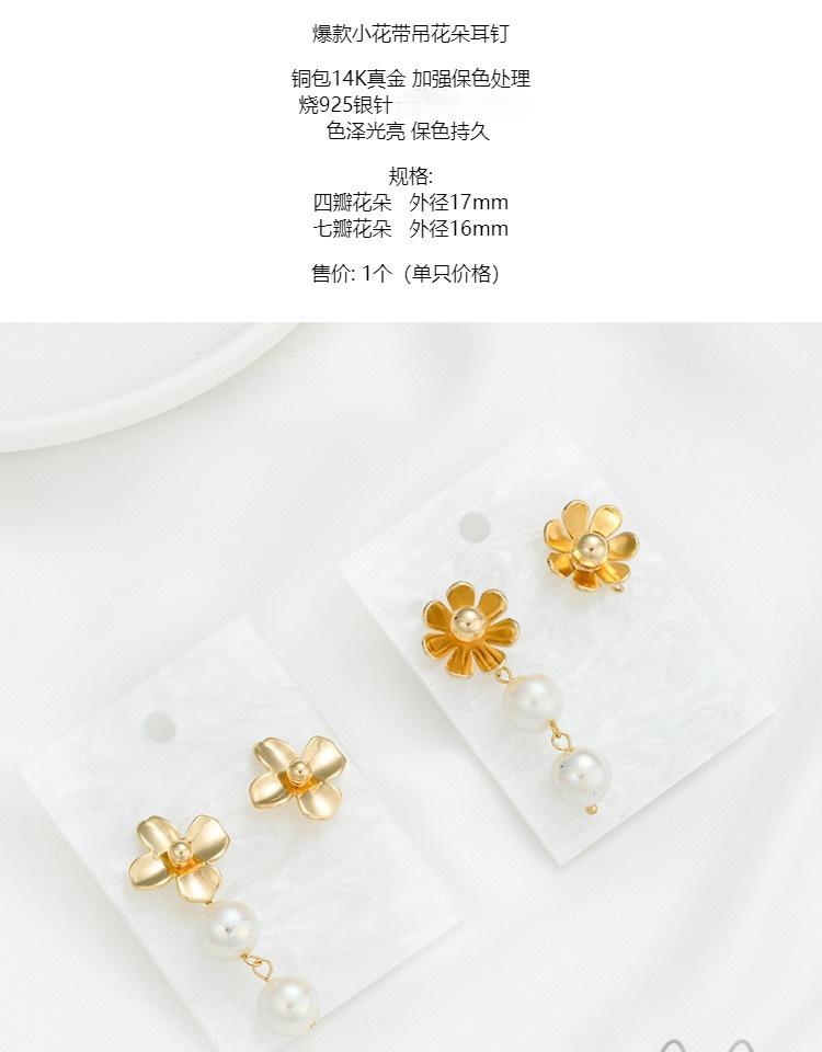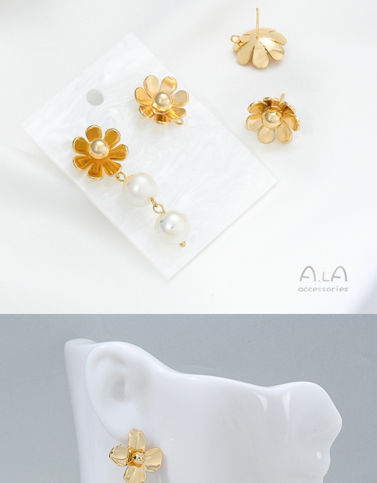 保色14k包金爆金小花吊り花ピアス付きdiy手作り銀針イヤリングアクセサリー材料