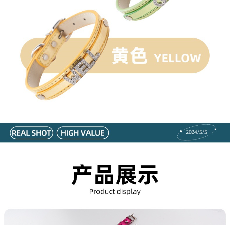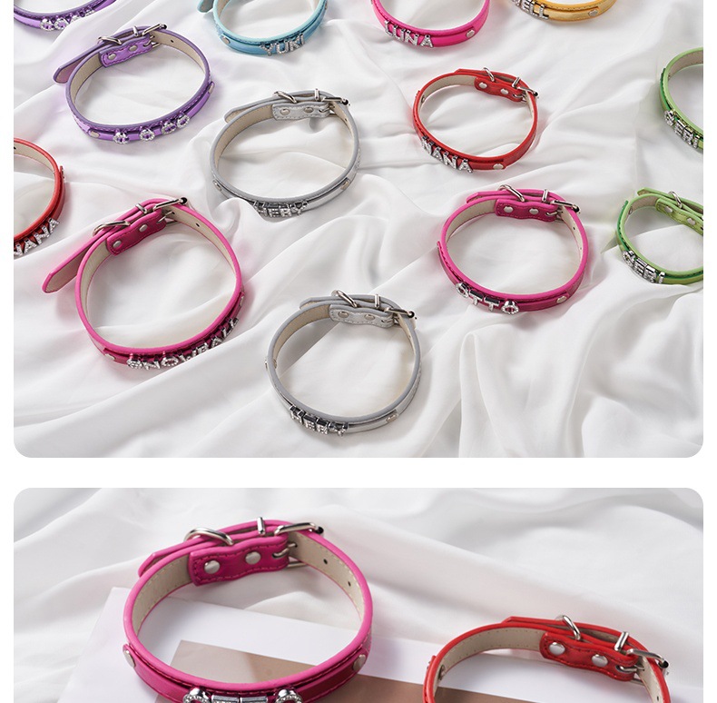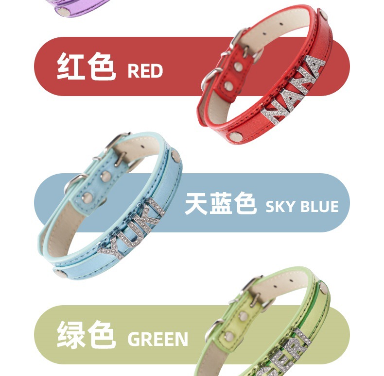 越境ins風キャンディー色ペット首輪シンプル一字鈴猫首輪皮質犬首輪現物
